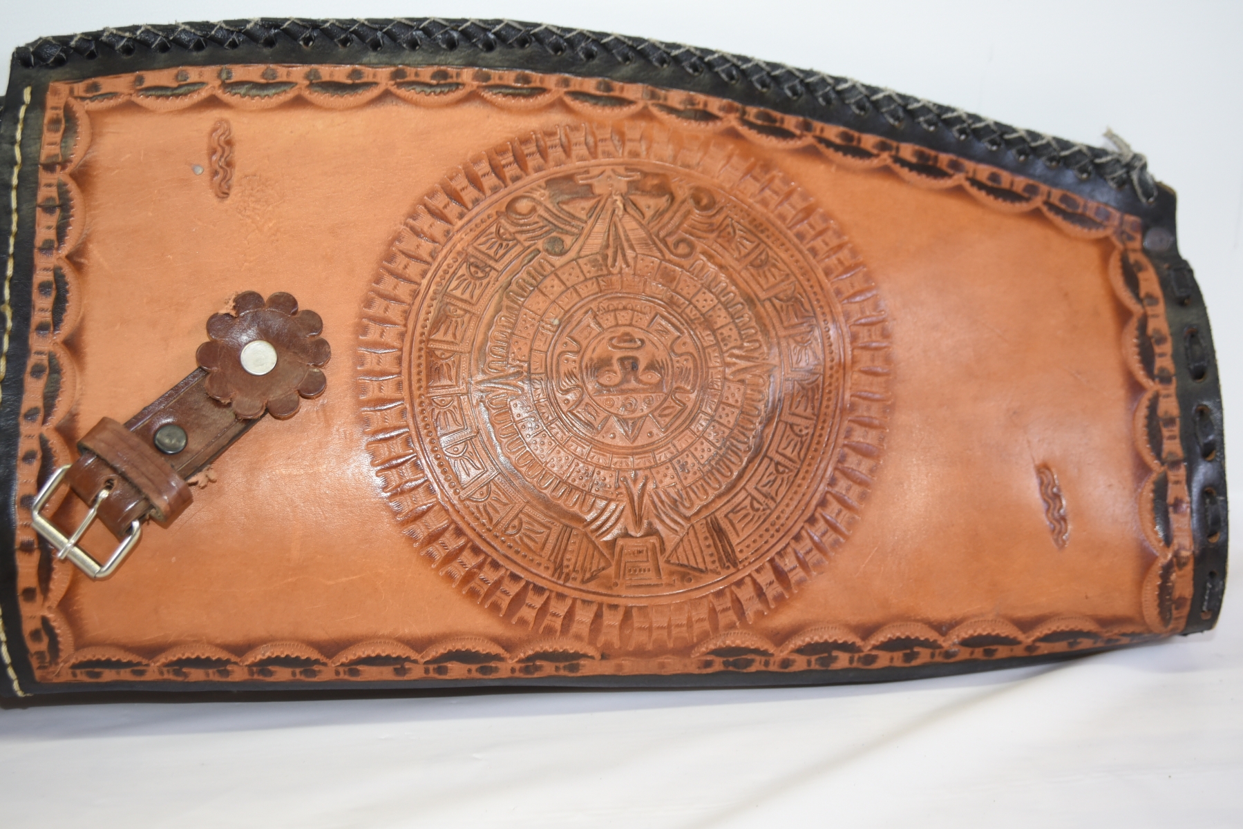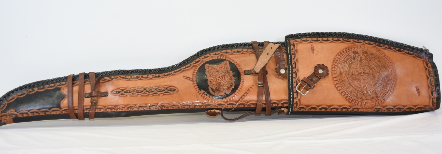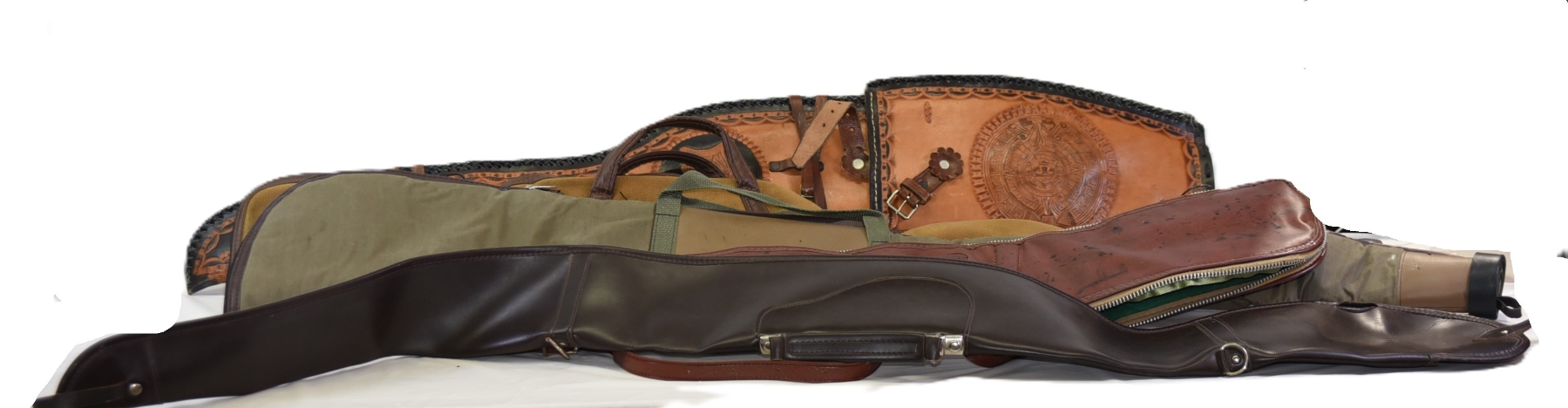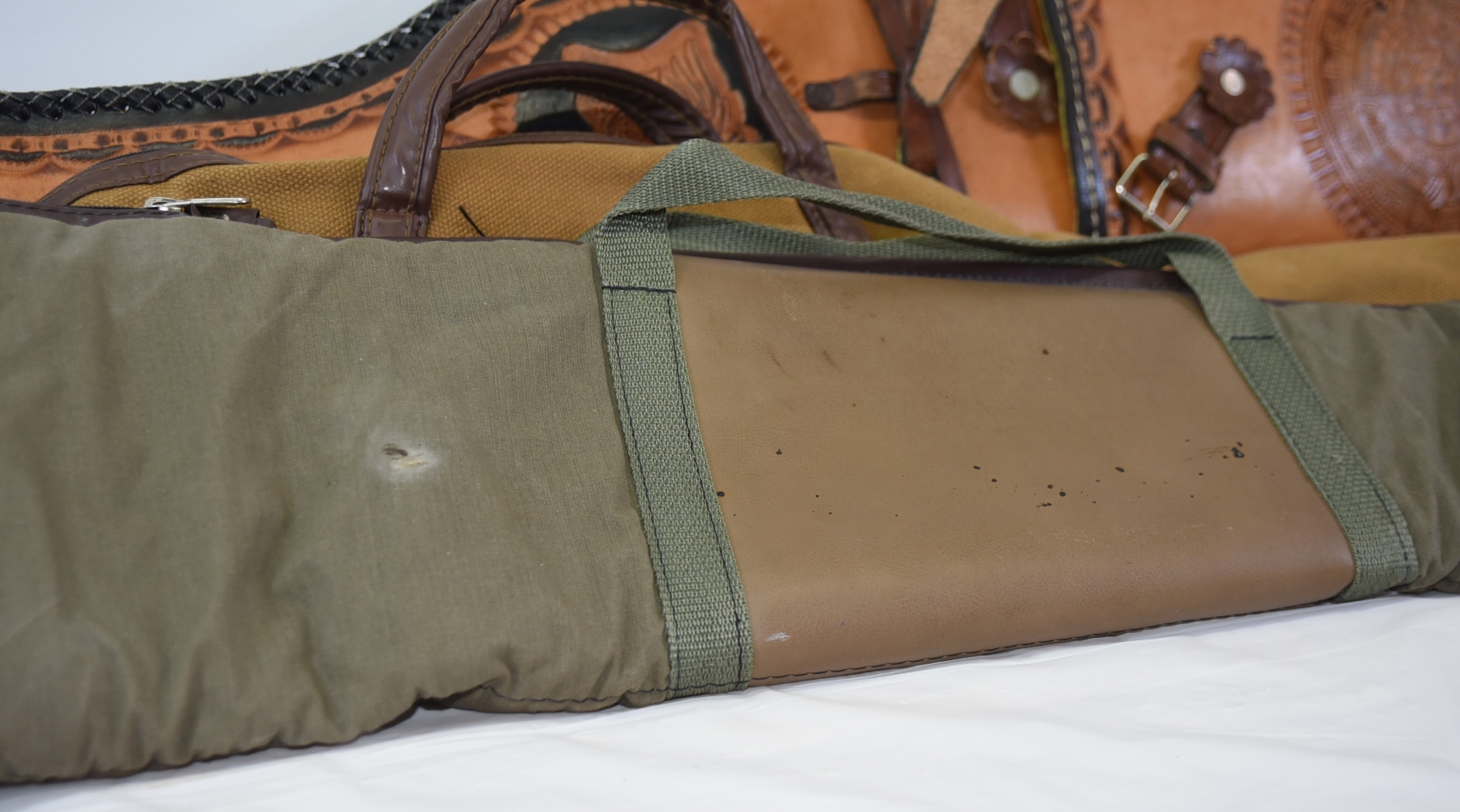 - 39" brown soft rifle case, has stain spots, few threads are ripped.