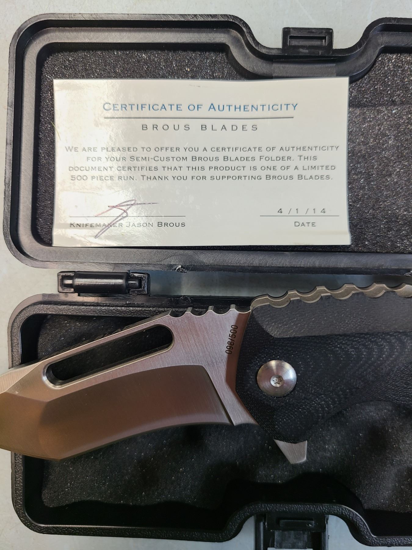 Brous Blades Reloader Custom Folding Knife #98 / 500 - Made in USA