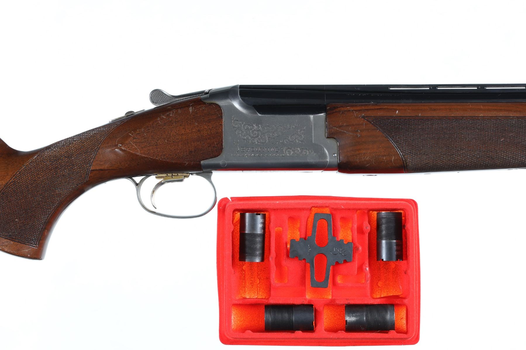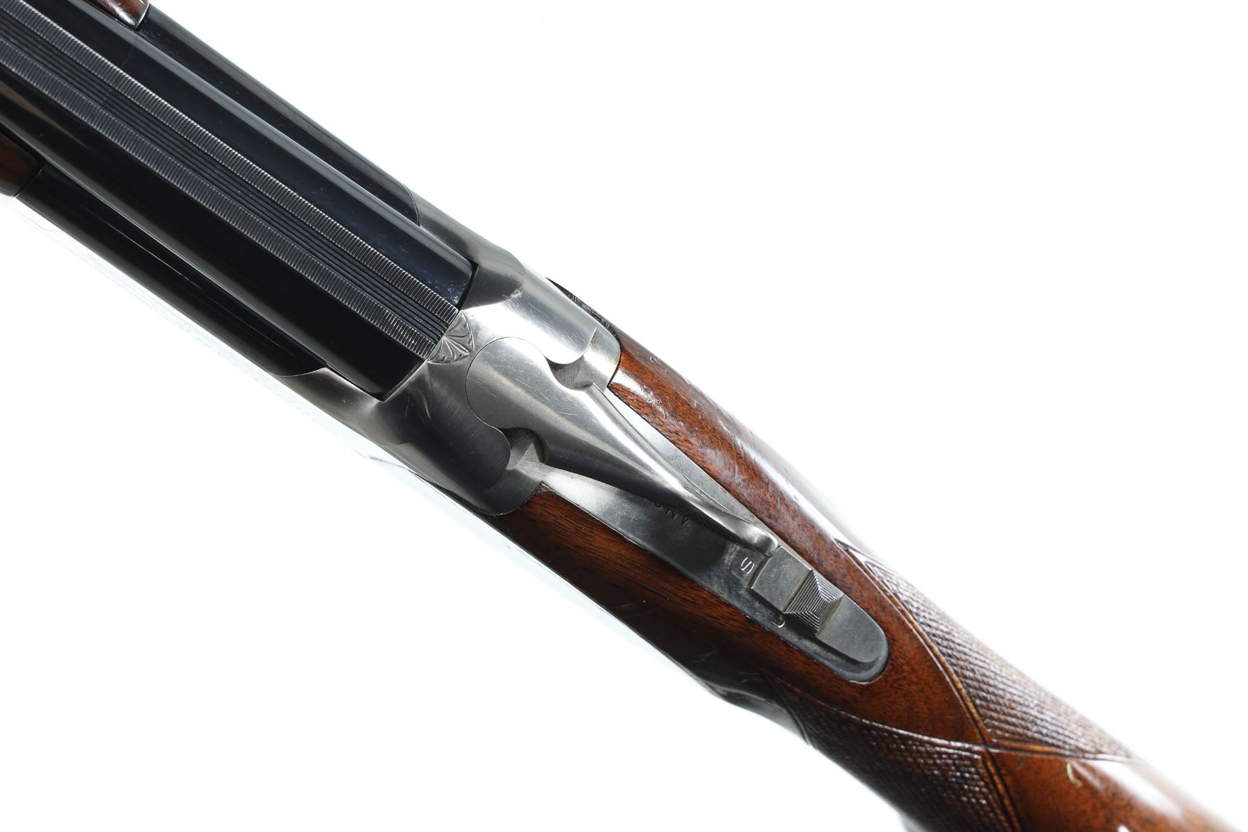 12ga Serial # 40660NV Invector choke tube system, single selective trigger with ejectors. LOP 14 1/2", DAC 1 1/2", DAH 2 1/4". Very fine overall condition with barrels retaining most all finish, coin finish receiver is very fine, stocks are very good with small bruises and impressions and moderate wear. Includes additional choke tubes, mechanically excellent. Mfg in 1988 Barrel 28" Modern