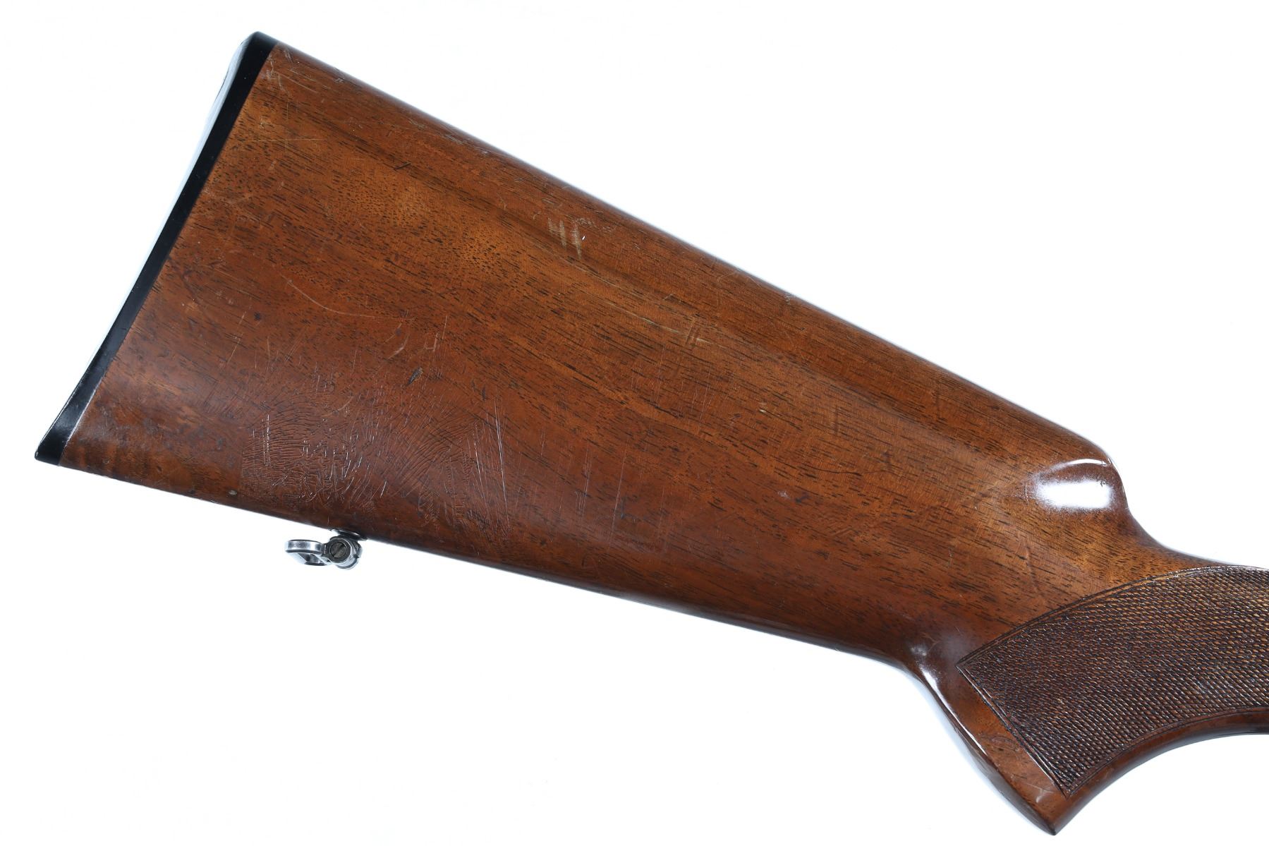 Fair: Some major parts replaced; minor replacement parts may be required; metal rusted, it may be lightly pitted all over, vigorously cleaned or re-blued; rounded edges of metal and wood; principal lettering, numerals, and design on metal partly obliterated; wood scratched, bruised, cracked or repaired where broken; in fair working order or can be easily repaired and placed in working order.