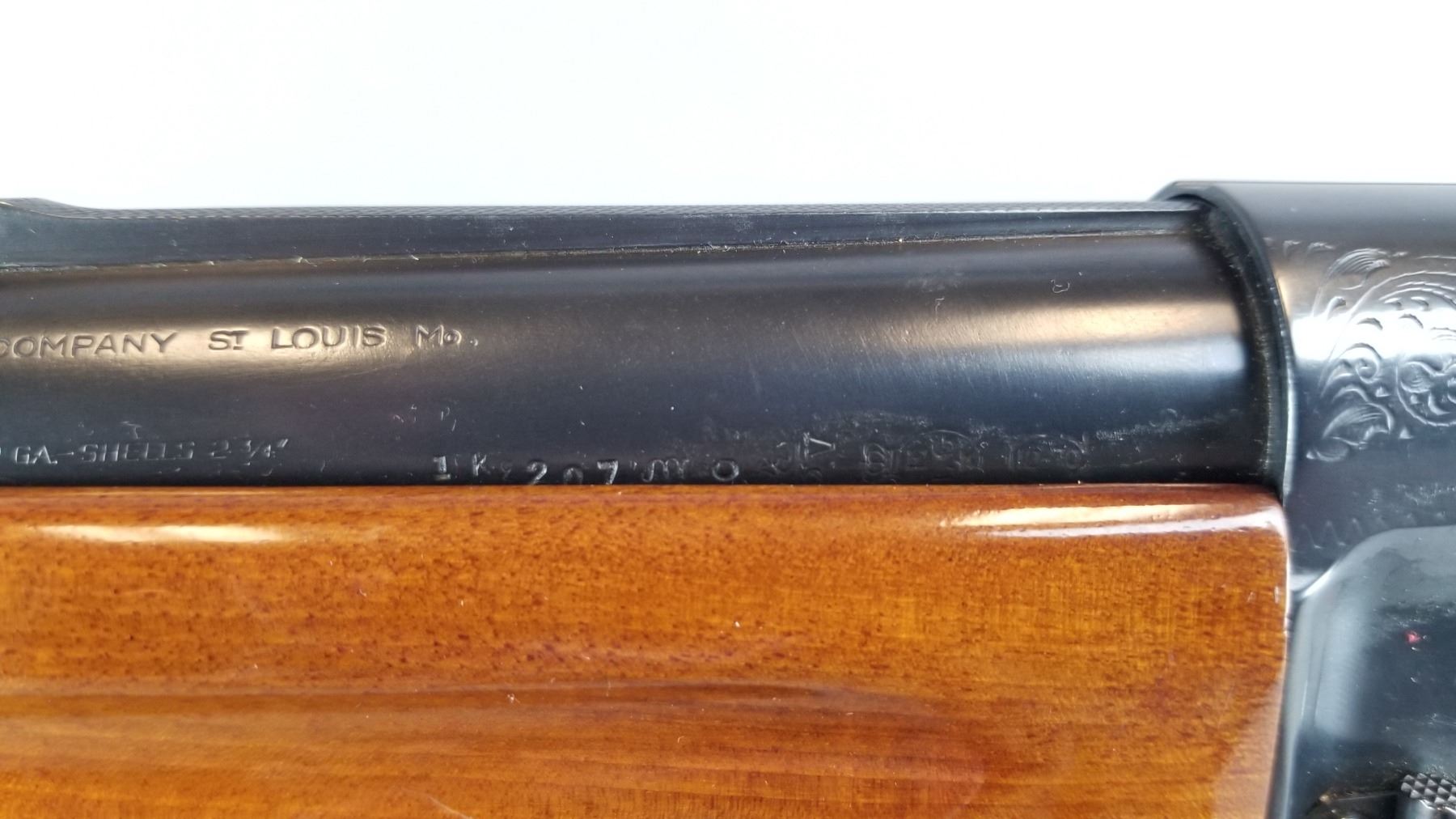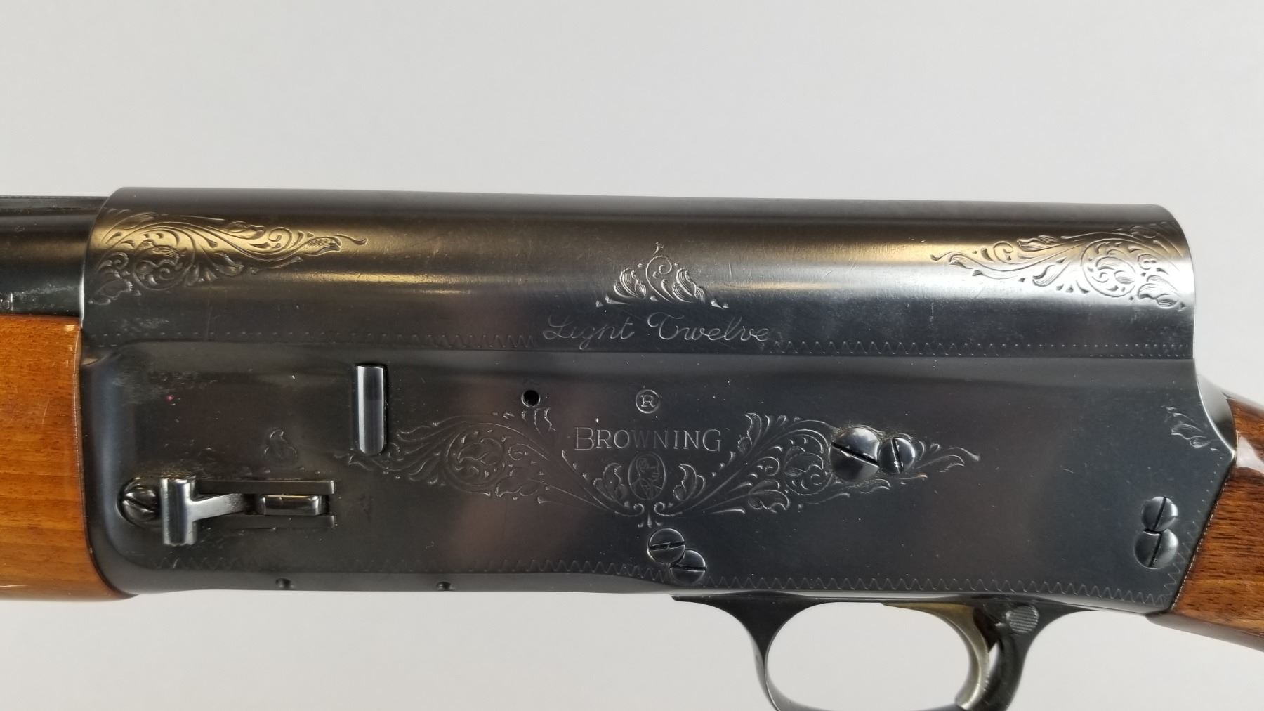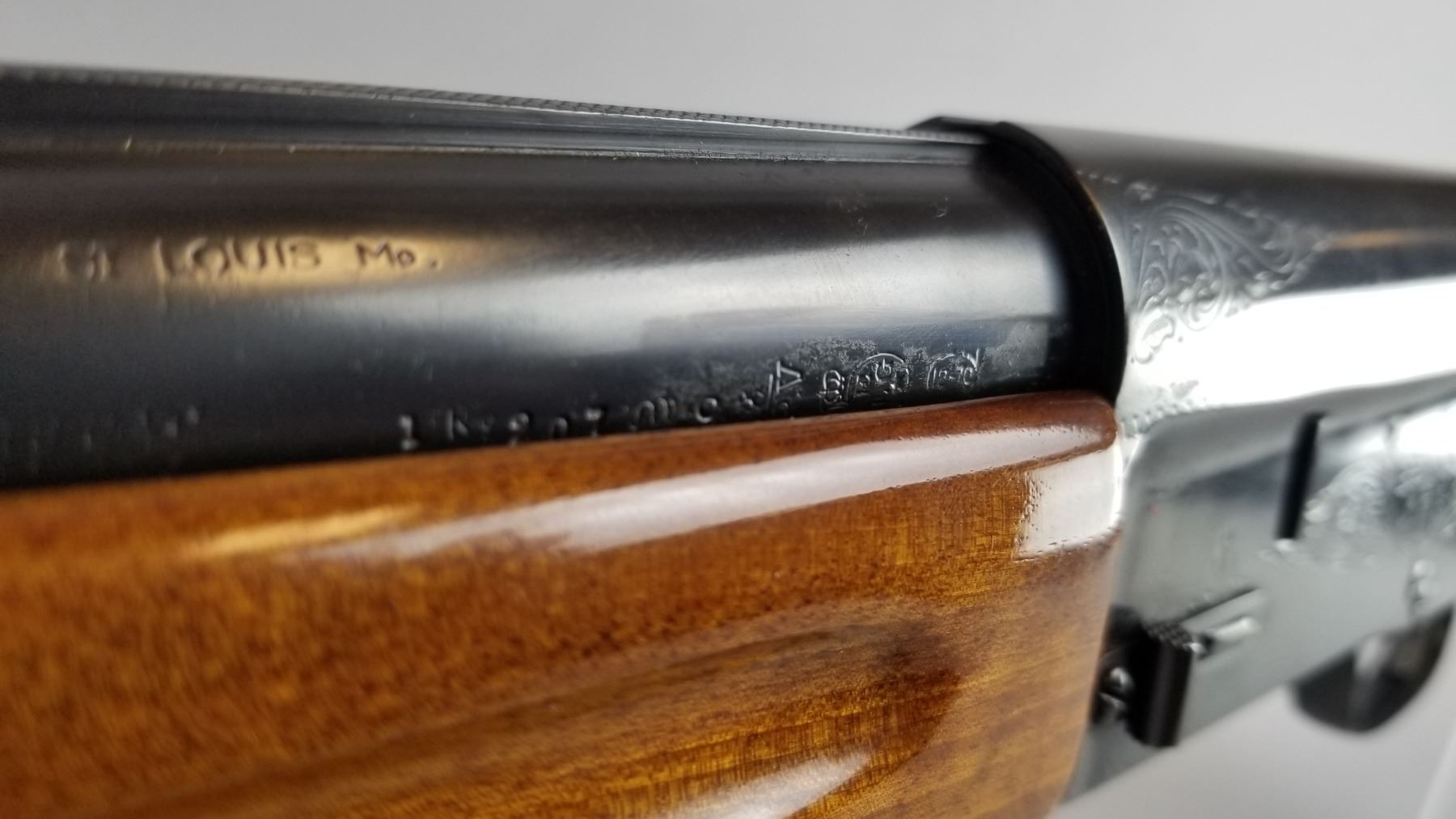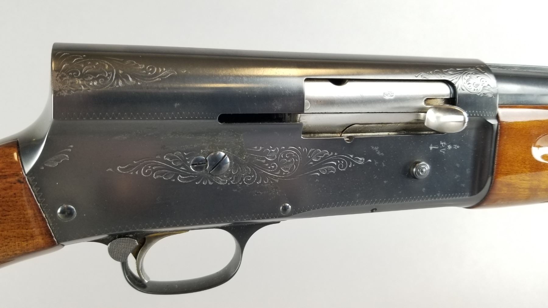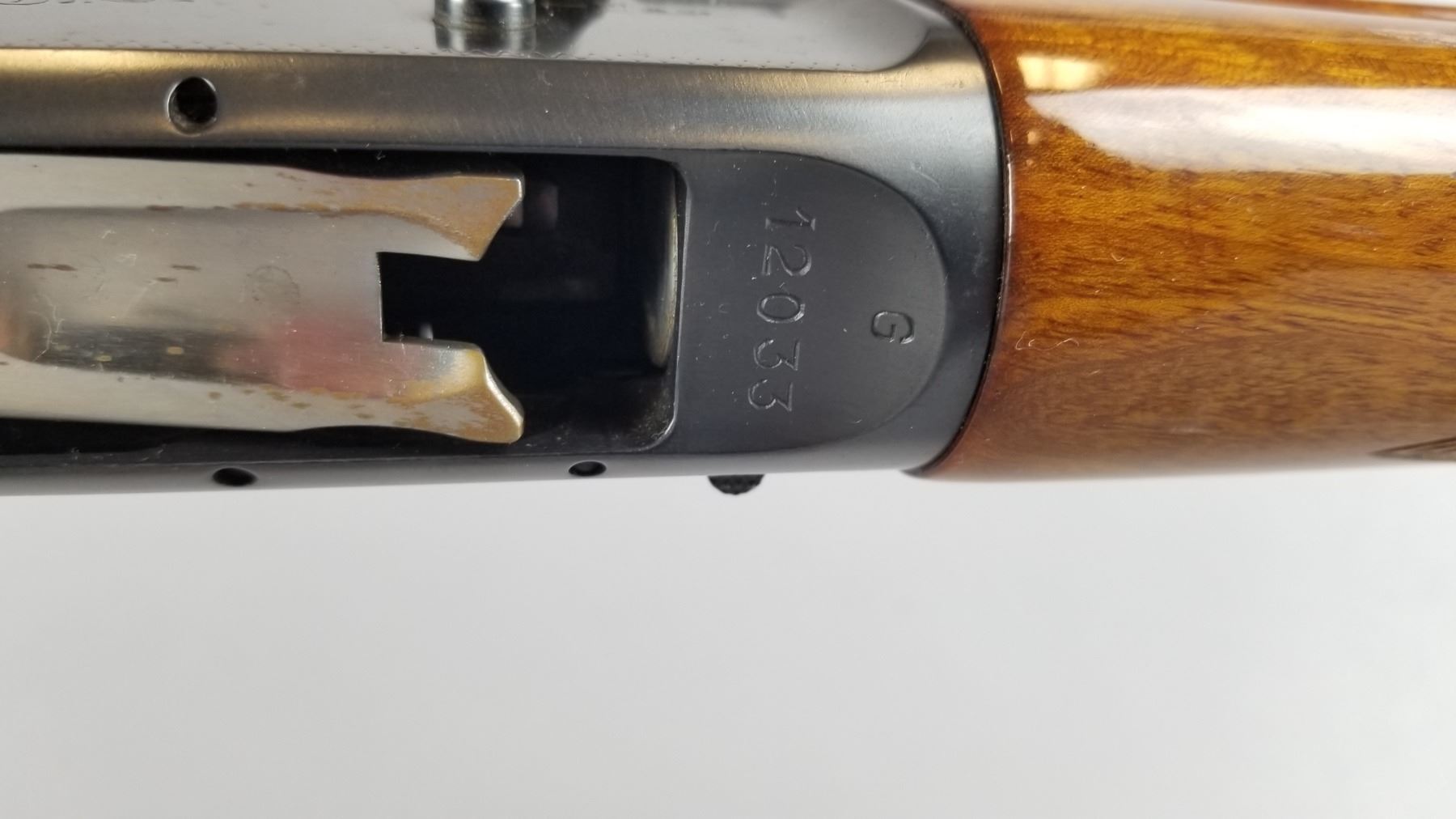 Belgian made A5. Barrel marked as full choke. St. Louis barrel address. Serial number dates the gun to 1956 production. Condition: Numerous minor handling marks and dings throughout the stock and forend. Edge wear on the vent rib. Maker: Browning Model: A5 Caliber/Gauge: 12ga SN: G-12033 Barrel: 29.5" Type: Shotgun NICS Required?: YES