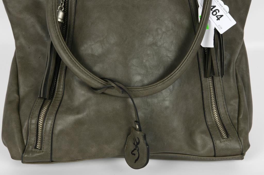 Browning Alexandria Concealed Carry Handbag - Charcoal, super nice pre owned Concealed Carry Handbag, The Browning? Alexandria Concealed Carry Handbag combines casual style with all the elements you need to hold personal items and a concealed weapon. The locking concealed carry pocket is designed for left and right entry, and provides quick access to the adjustable holster. A Browning hidden key ring offers additional security, ensuring that the concealed carry pocket can be locked when necessary. A wide base allows the purse to stand on its own. Multiple inner pockets hold your cell phone and other essentials in easy reach. The Browning Alexandria Concealed Carry Handbag is made of premium polyurethane faux leather with a polyester lining. Includes adjustable holster and 2 keys. 23.25"H x 14"W x 5"D. Supple polyurethane faux leather with polyester lining Left and right entry to locking gun pocket, Hidden key ring and 2 keys Adjustable holster, Multiple inner pockets, Wide base for stability, Chic tassels and metal accents