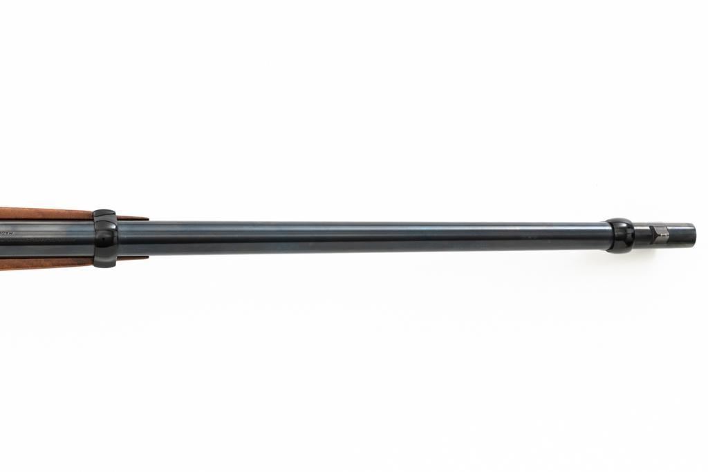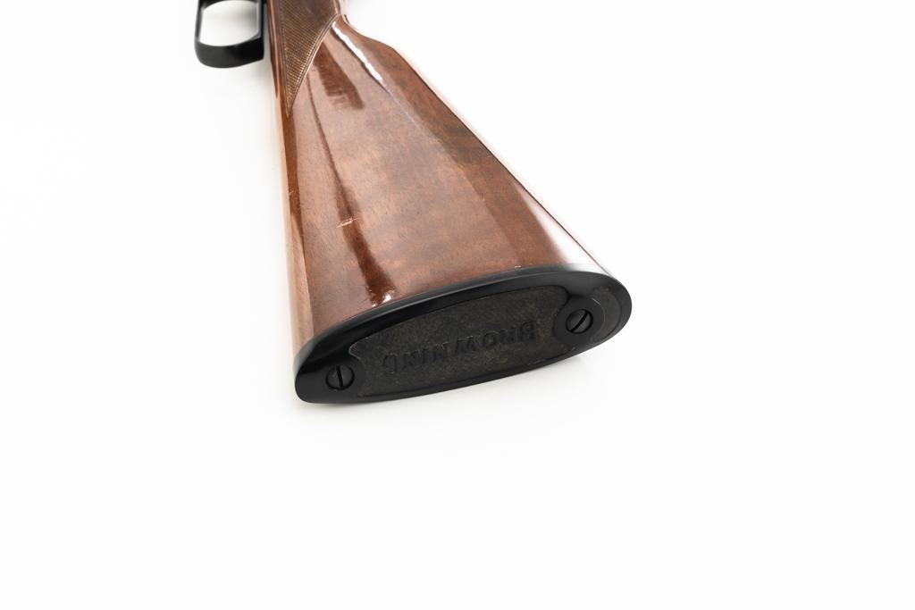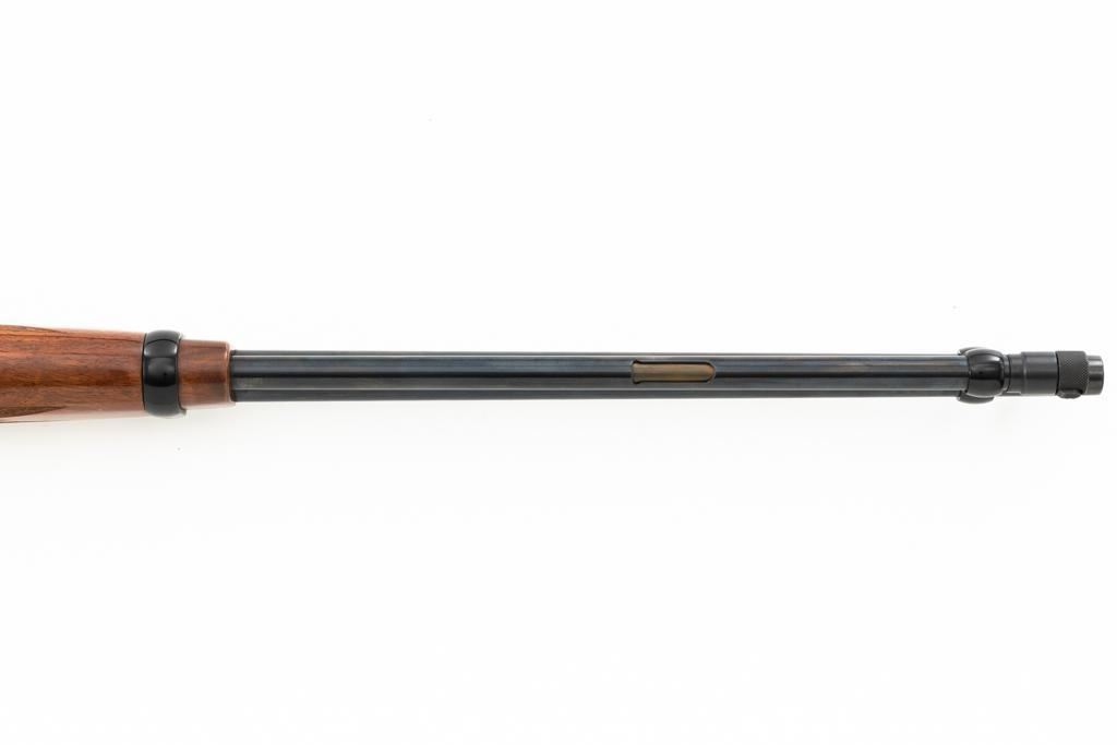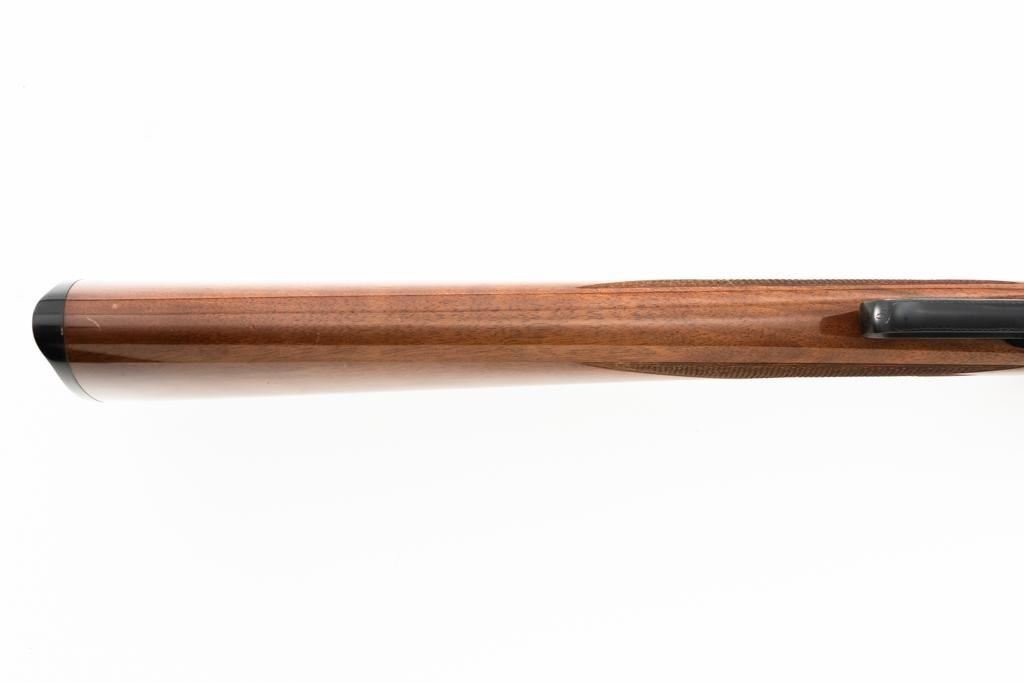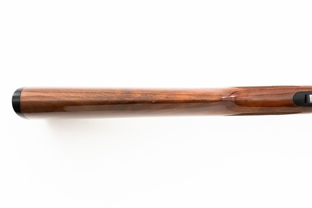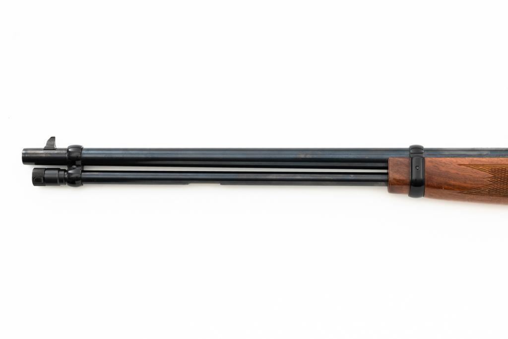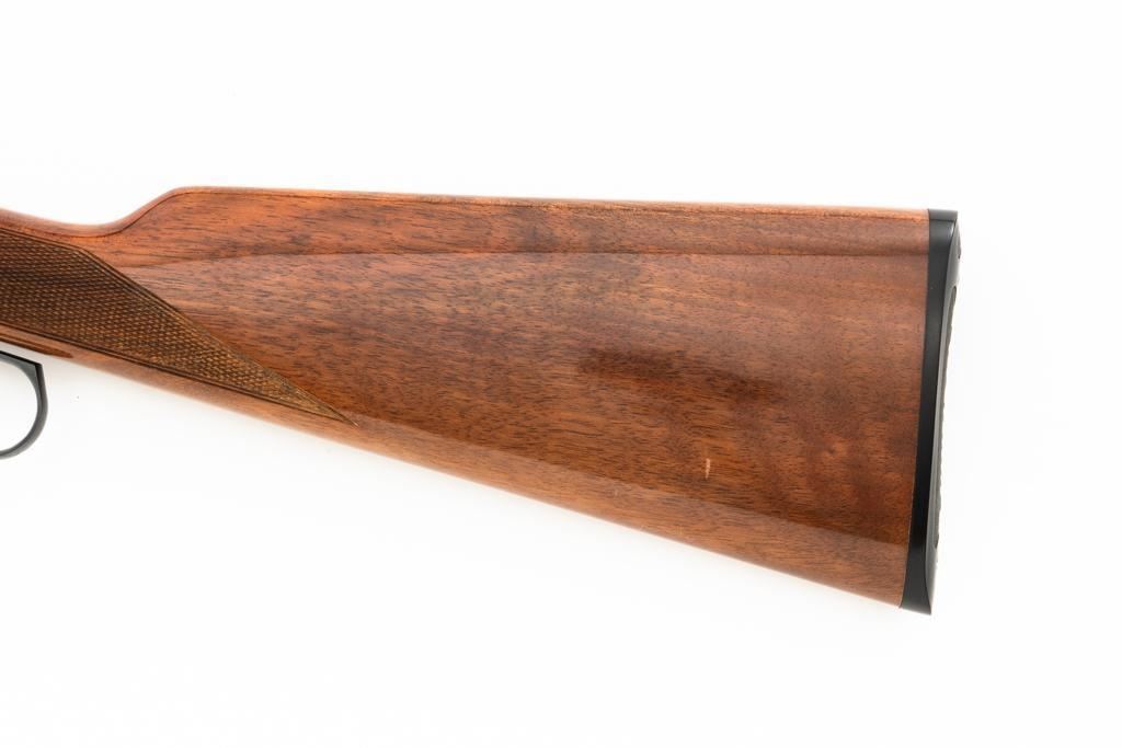 Browning BL-22 Grade II Lever Action Rifle, #70B80133, .22 S-L-LR cal., 20" barrel, blue finish with factory scroll engraving on the receiver, gloss-finished checkered American walnut stock and forend, with dovetailed blade front and folding semi-buckhorn rear sight. Stock ends with a plastic Browning buttplate, providing a 13.5" LOP. Barrel is marked "BROWNING ARMS COMPANY ST LOUIS Mo. & MONTREAL P.Q. / MADE IN JAPAN". Mfgd 1970. Rifle is in excellent overall condition, showing little use, with only light handling marks, retaining approx. 99% factory blue. Stock is in near excellent condition, with light impressions and storage marks. Action is crisp and functions smoothly. Bore is mirror bright with excellent rifling. Est.: $600-$800. (C&R)