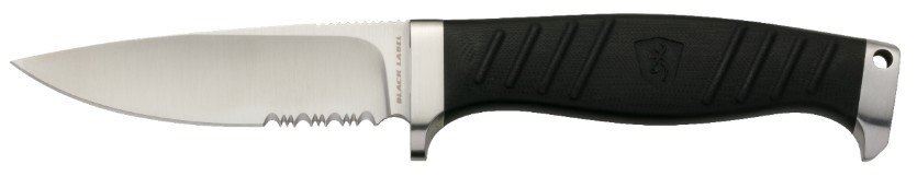 Blade Type: Drop Point Blade Edge: Partially serrated Sheath Description: Top grain leather belt Blade Length: 4" Overall Length: 9" Blade Composition: 7Cr17MoV stainless steel Handle Features: Laser engraved Buckmark, brushed stainless bolsters and butt cap, lanyard eyelet Handle Material: Ribbed… . This Lot is for one brand new factory Sealed Unit