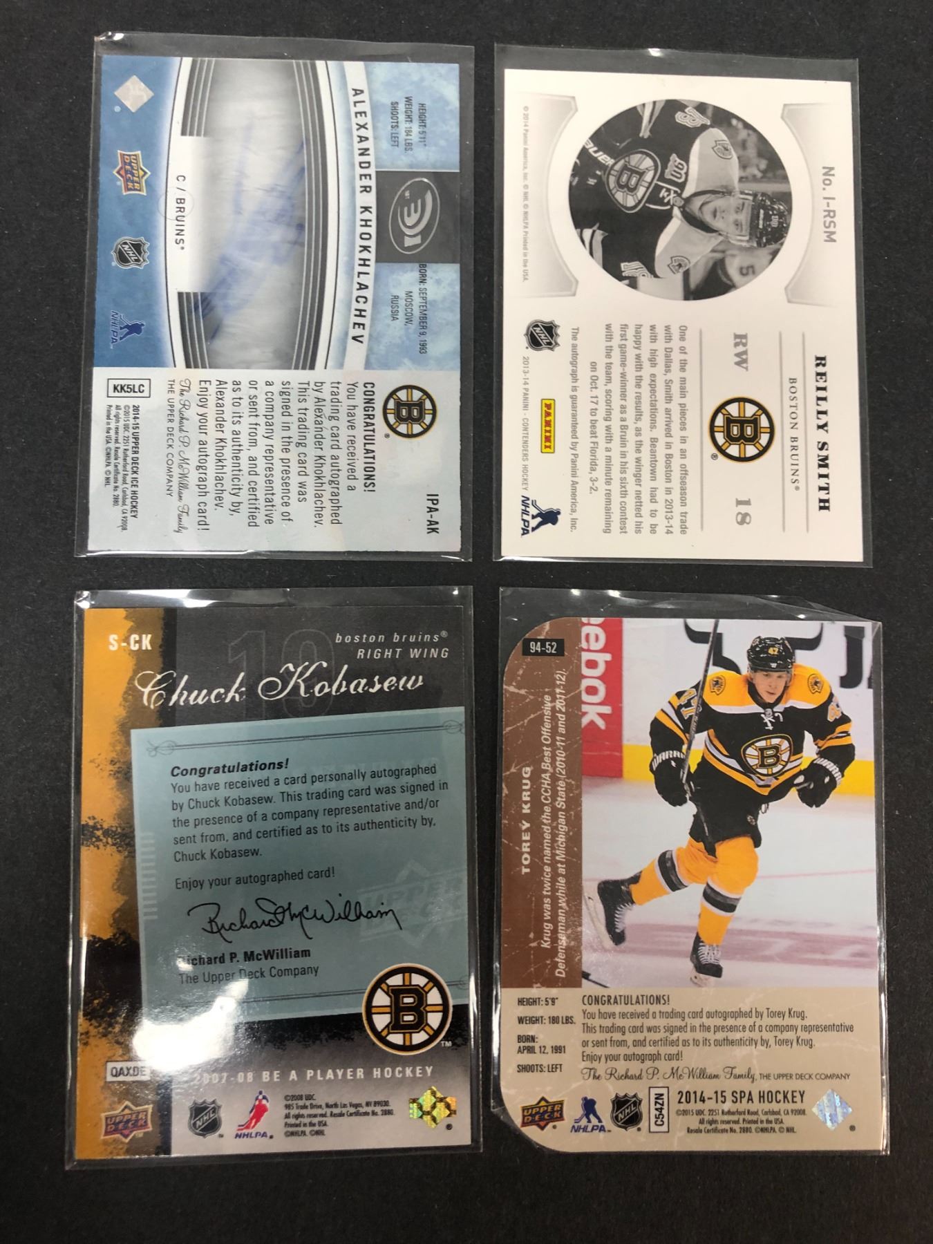 Lot of 4 Boston Bruin certified autogrpah cards as shown