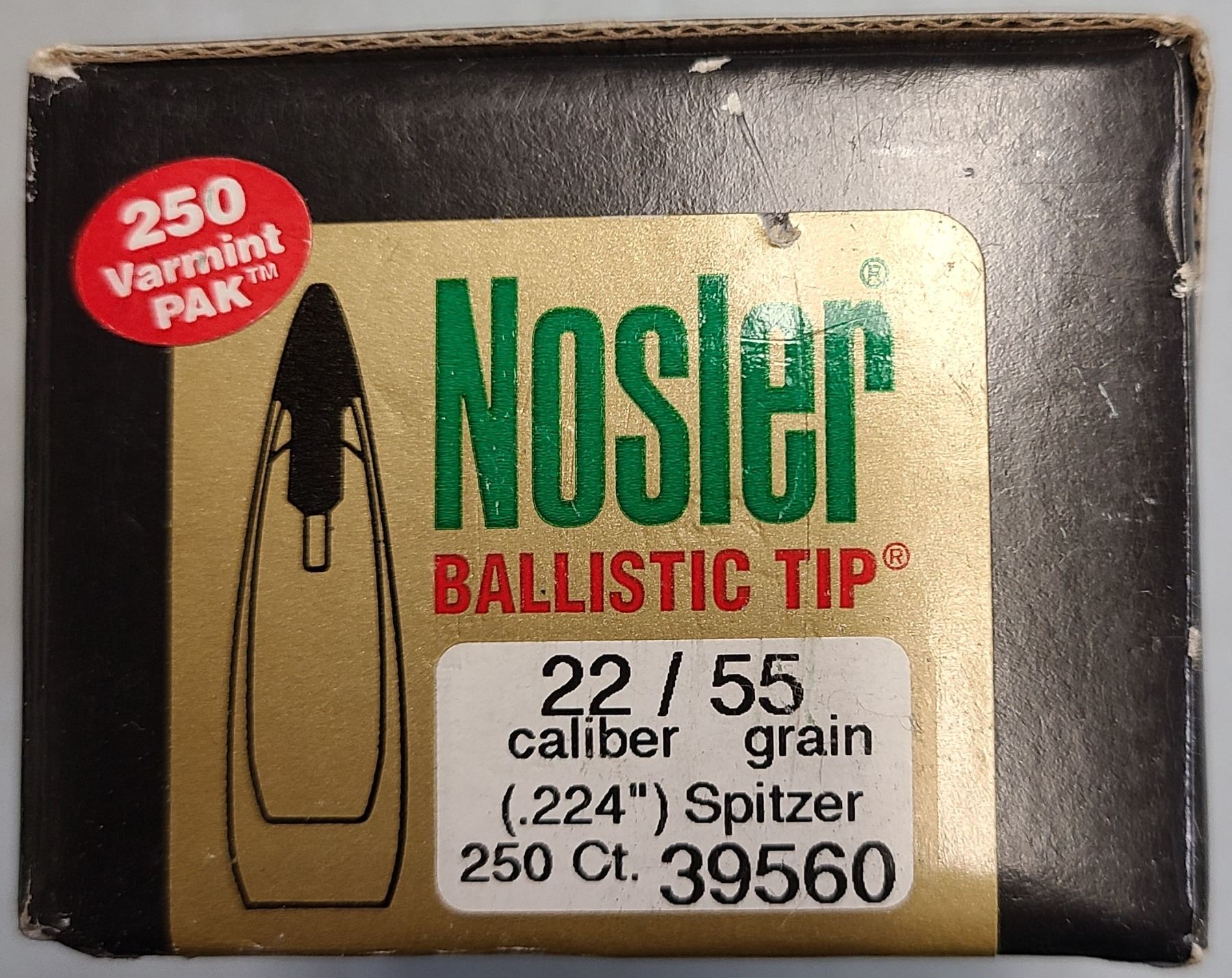 Bullets Nosler Ballistic Tip 22 cal 55 gr Spitzer - 250 rds Varmint Pack