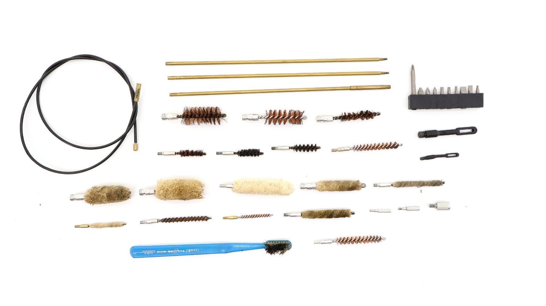 (1) KIT INCLUDES; 3-PIECE ROD, JAGS, BRUSHES, MOPS, PATCHES, ETC., MAY NOT BE COMPLETE / PIECES MAY BE MISSING, WITH PARTS DIAGRAM IN ORIGINAL PACKAGING. SEE PHOTOS.
