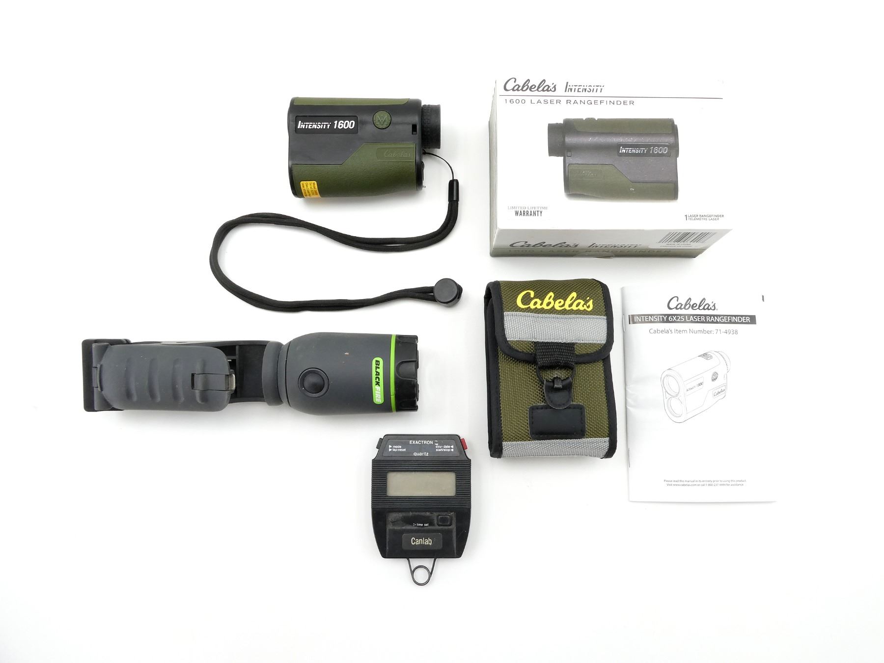 CABELA'S INTENSITY 1600, CANLAB STOP WATCH AND BLACKFIRE FLASHLIGHT LOT