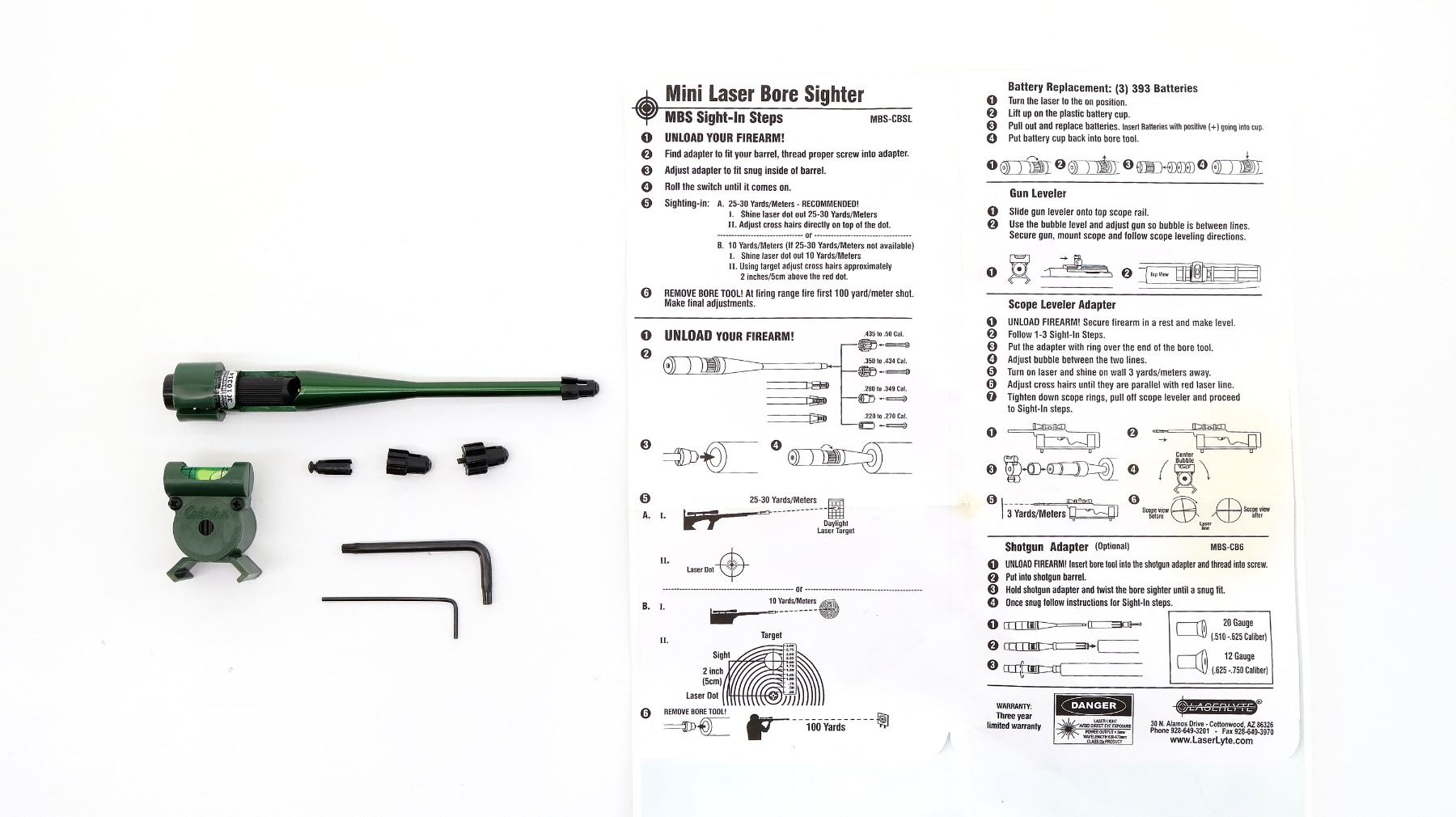 (1) INCLUDES; GUN LEVELER, SCOPE LEVELER ADAPTER, SHOTGUN ADAPTER, ETC., WORKING LASER, MAY NOT BE COMPLETE / PIECES MAY BE MISSING, WITH INSTRUCTIONS. MAY REQUIRE FITTING. SEE PHOTOS.