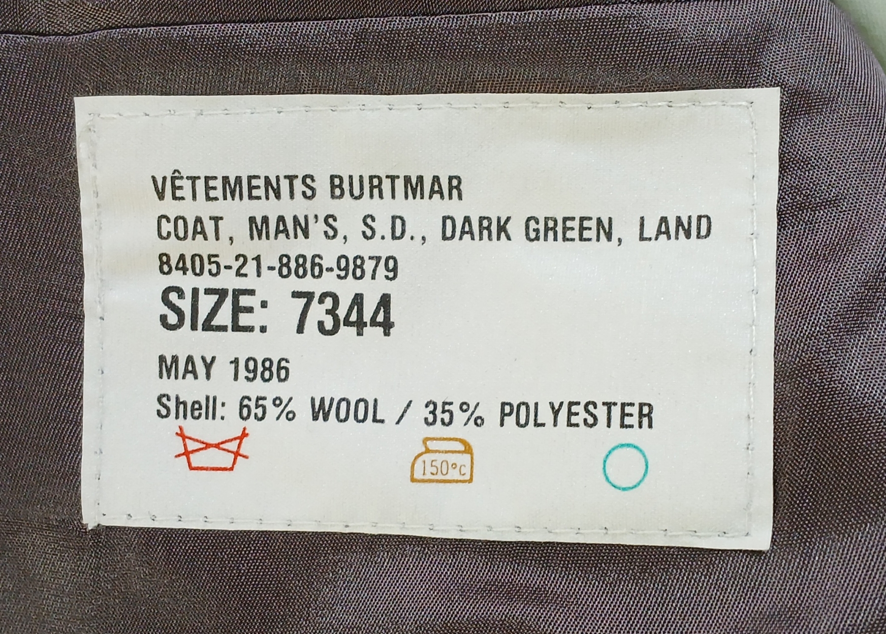 NOTE: SIZES MARKED COAT 7344 & PANTS 7038