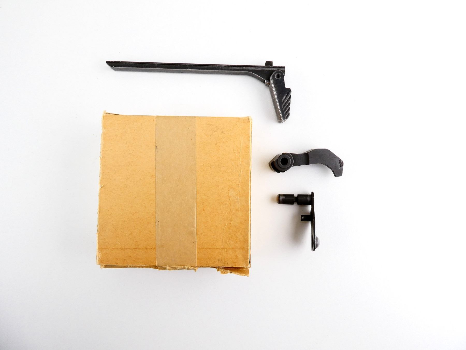 LOT INCLUDES; HAMMER, TAKE-DOWN LEVER, COCKING LEVER, NOS BOX OF MAGAZINE PLATFORMS, ETC. MAY REQUIRE FITTING. SEE PHOTOS.
