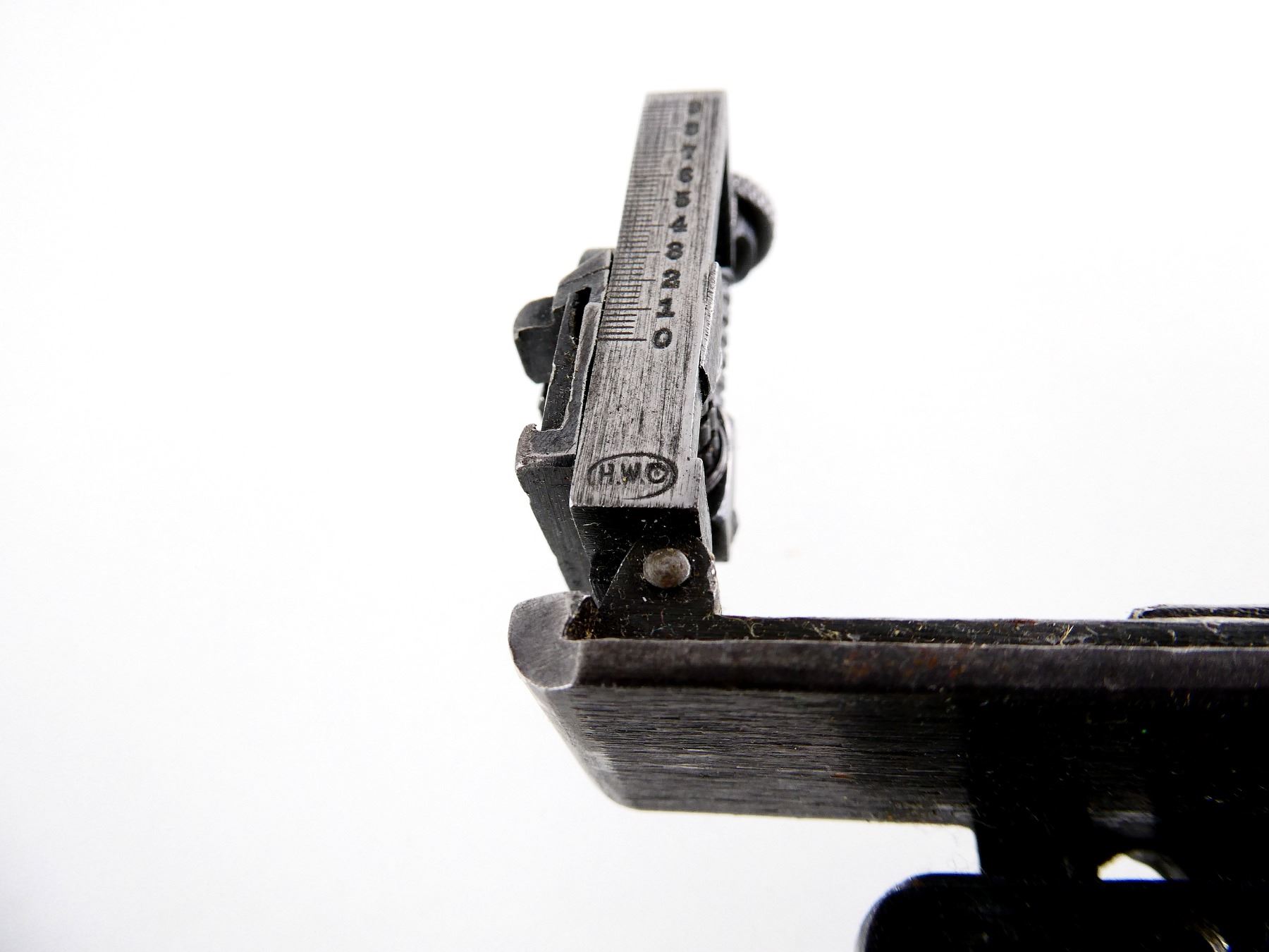 (1) PEEP SIGHT, FITS NO.1 MKIII .22 LR / .303 BR RIFLES, BLUED STEEL CONSTRUCTION, REPLACED SCREW, MARKED: "HWC" IN AN OVAL. MAY REQUIRE FITTING. SEE PHOTOS.