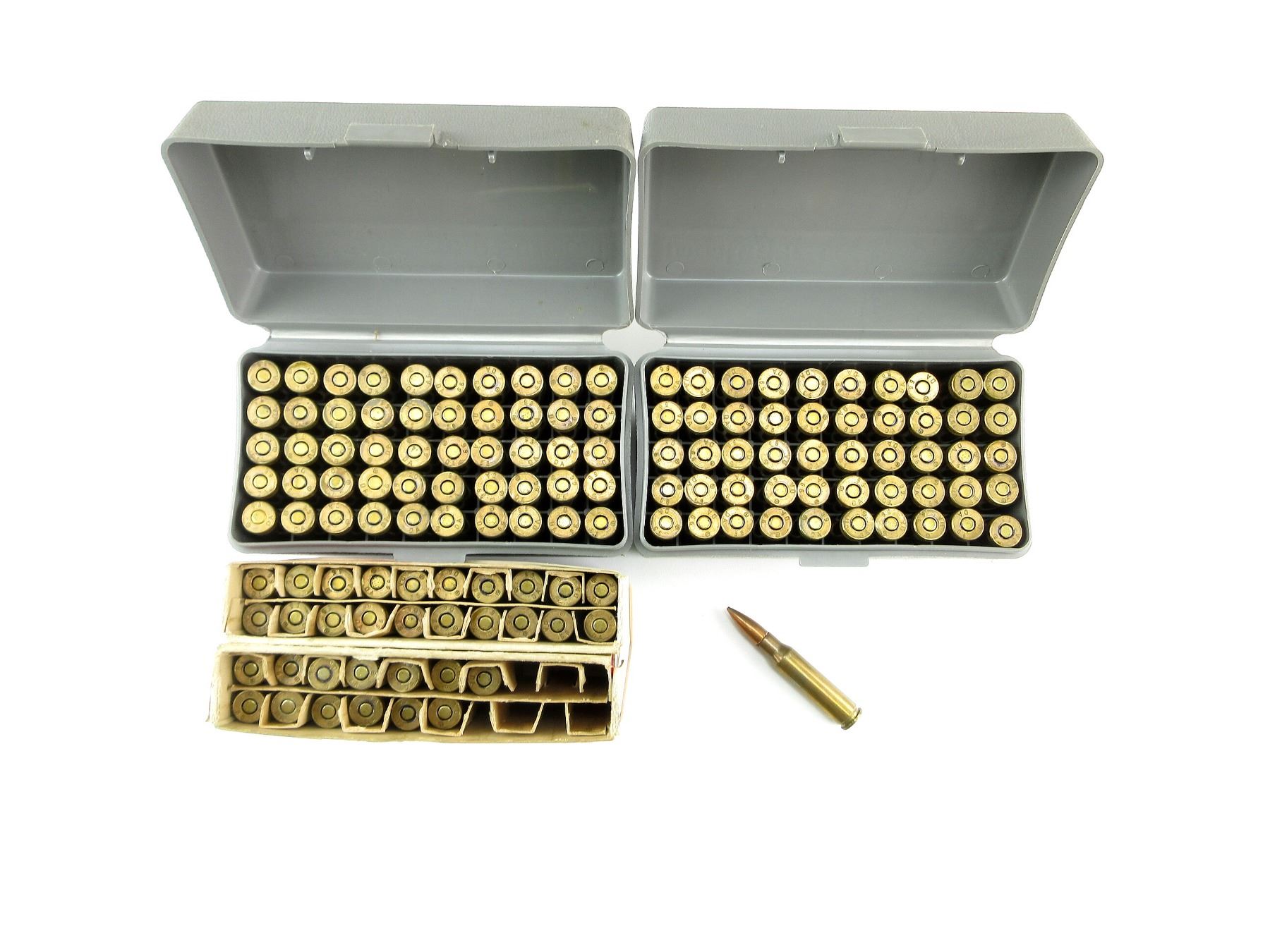 LOT INCLUDES; APPROX. (134) RNDS, FMJ, (2) MTM CASE-GARD 50 PLASTIC AMMO BOXES.
