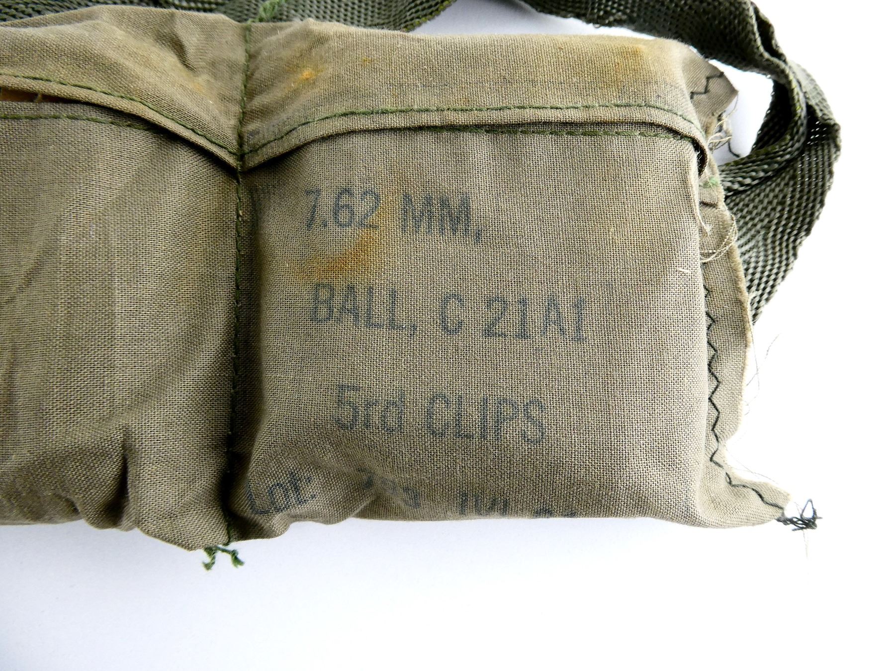 LOT INCLUDES; APPROX. (60) RNDS, FMJ, (12) STRIPPER CLIPS, (1) GREEN BANDOLIER.