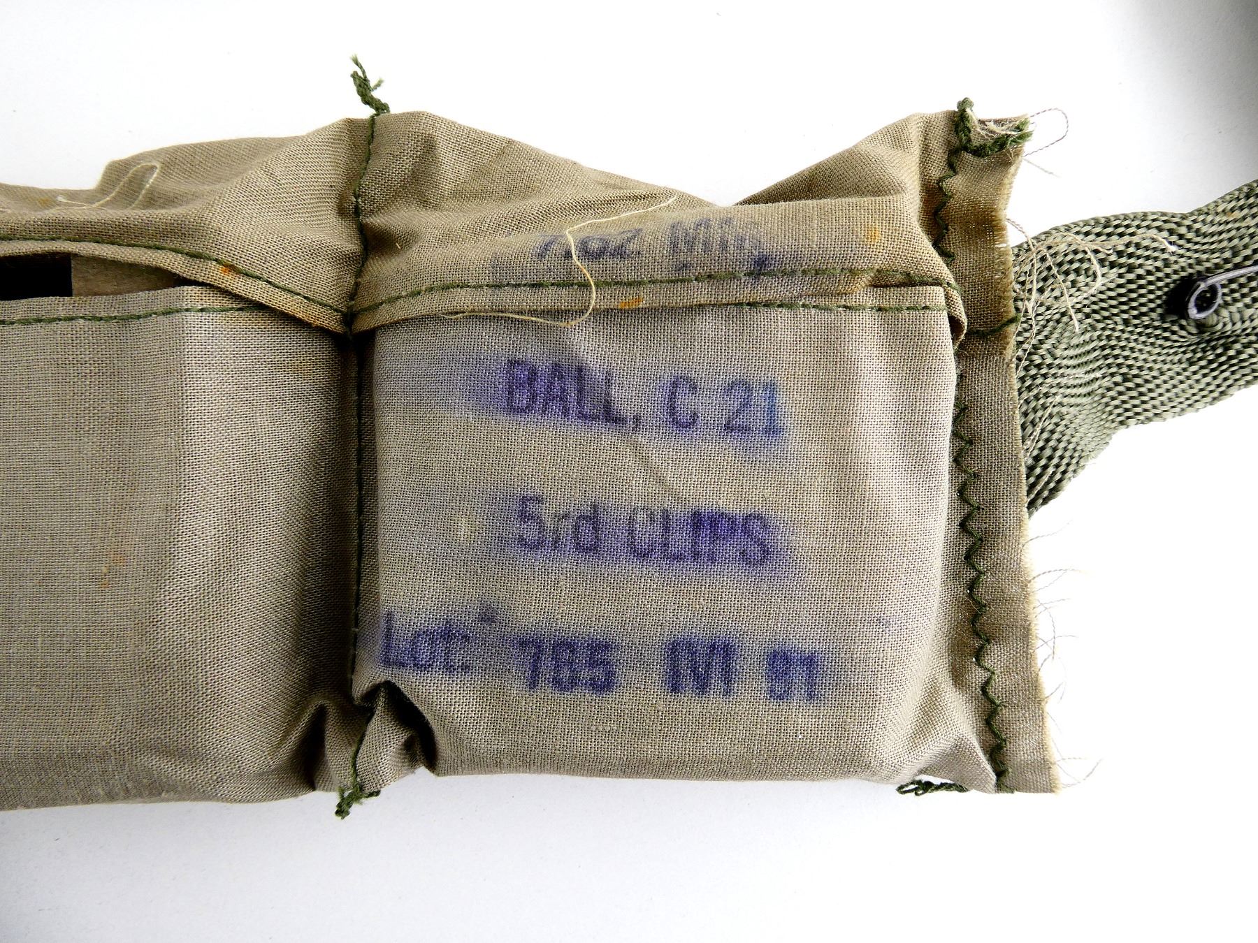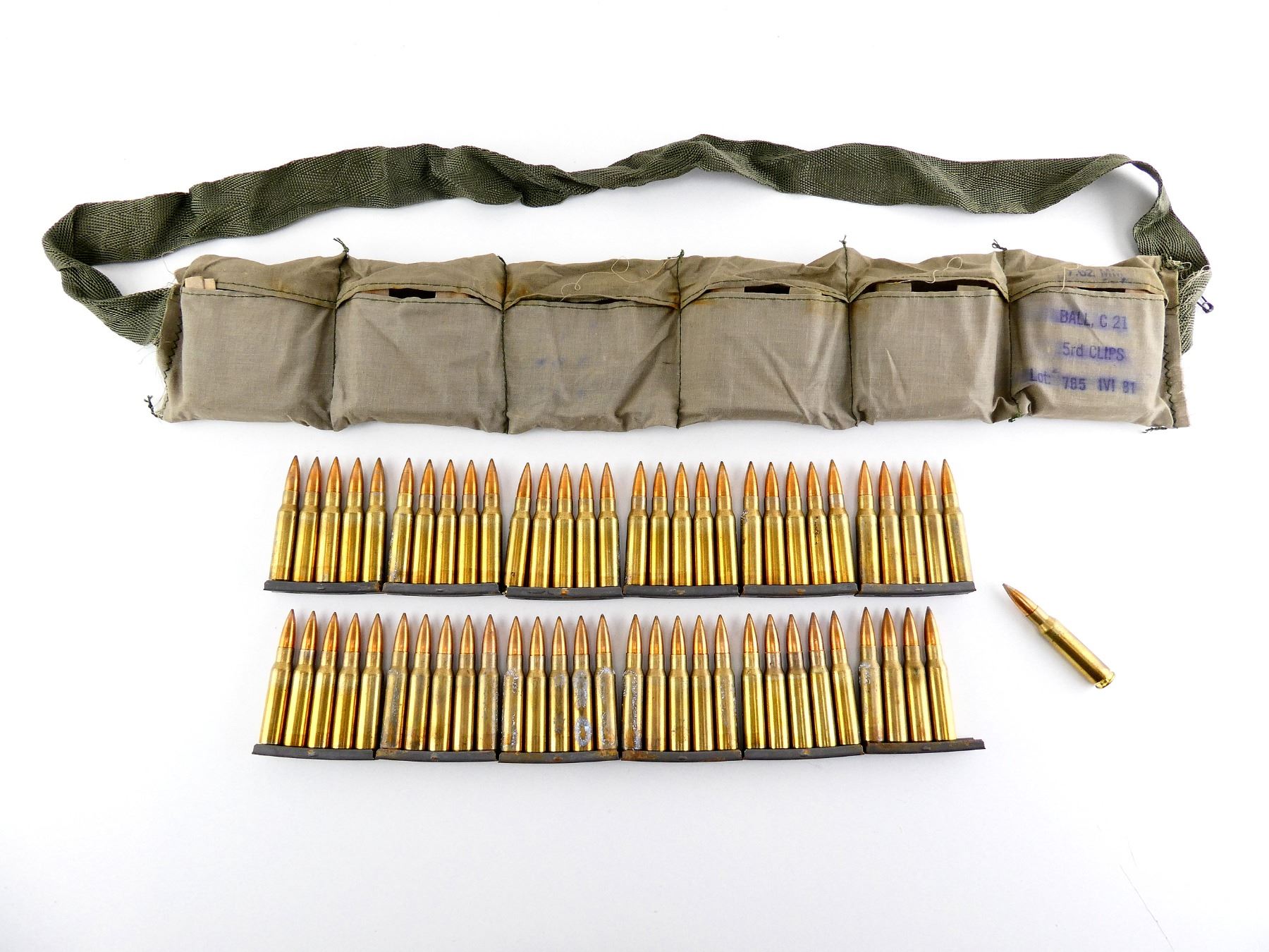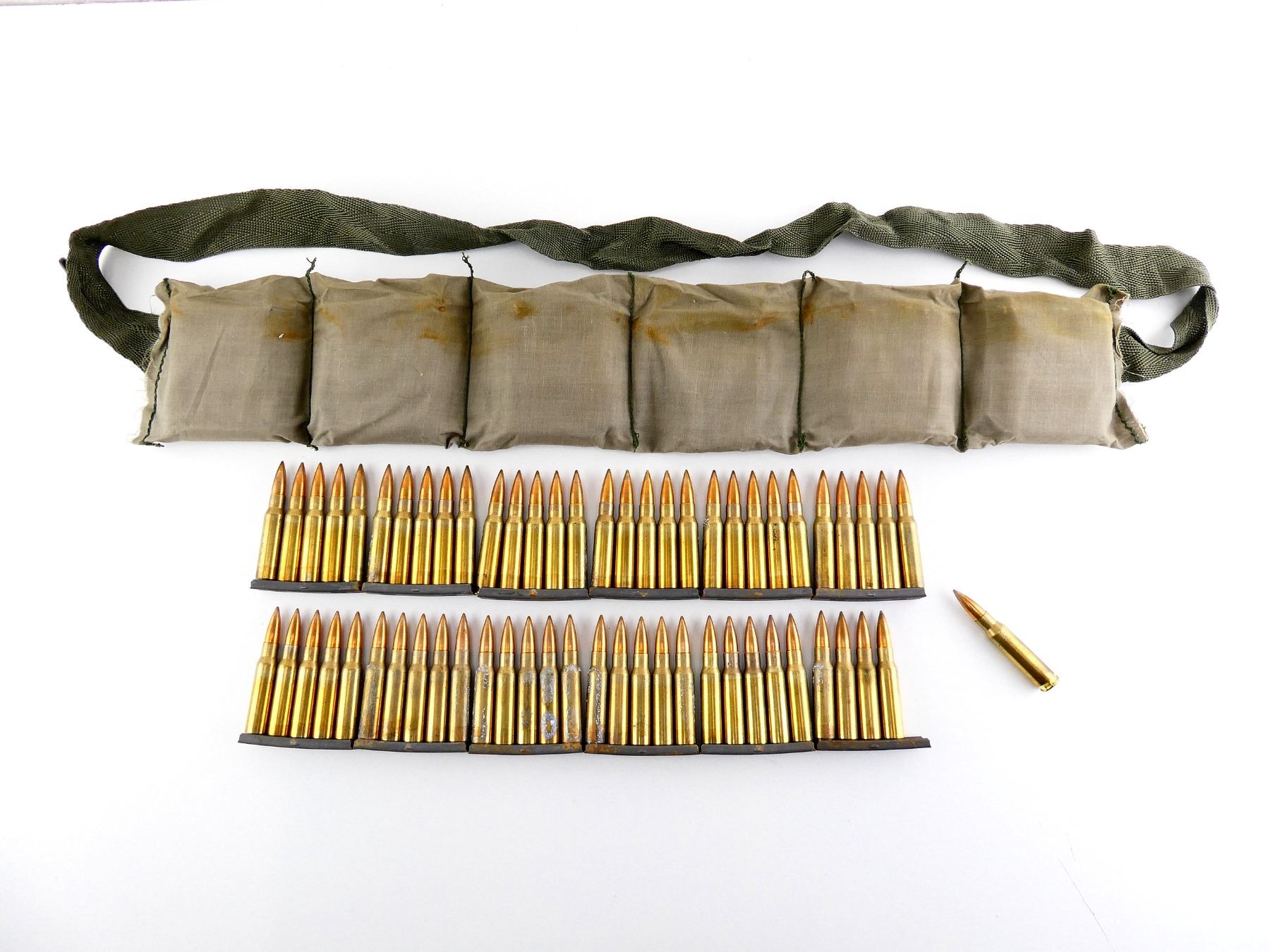 LOT INCLUDES; APPROX. (60) RNDS, FMJ, (12) STRIPPER CLIPS, (1) GREEN BANDOLIER.