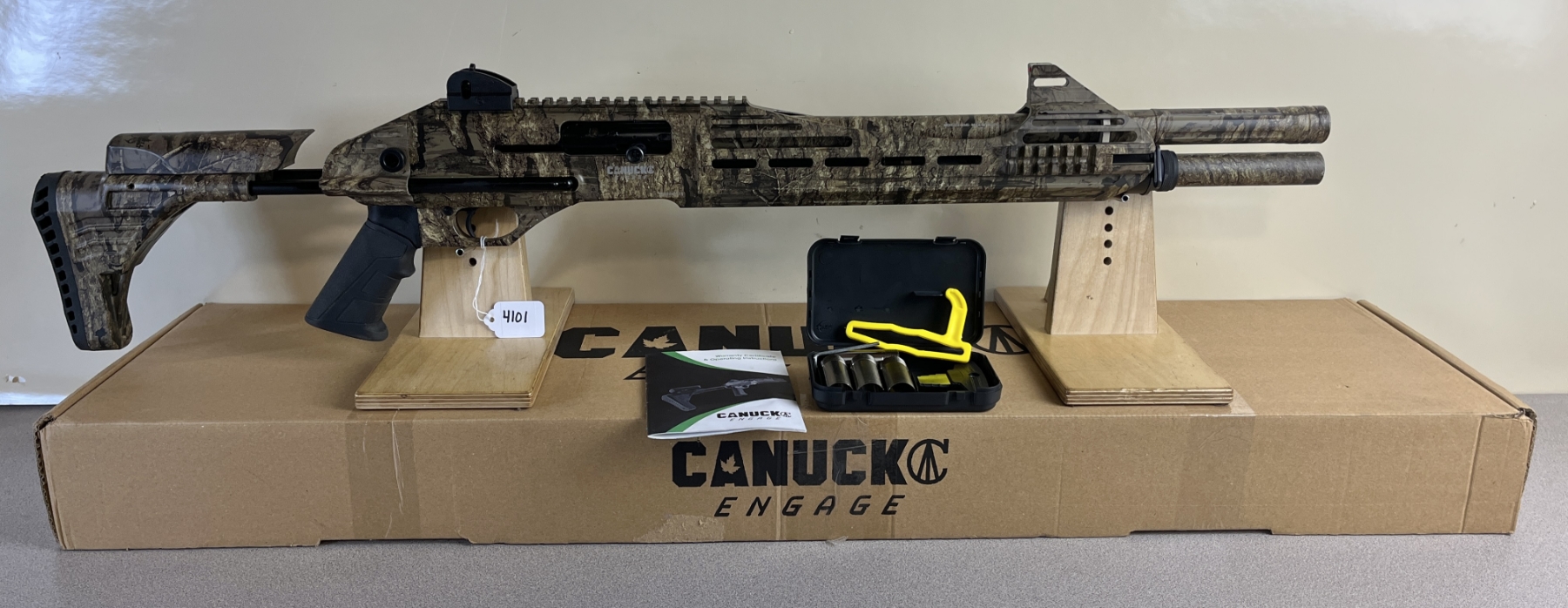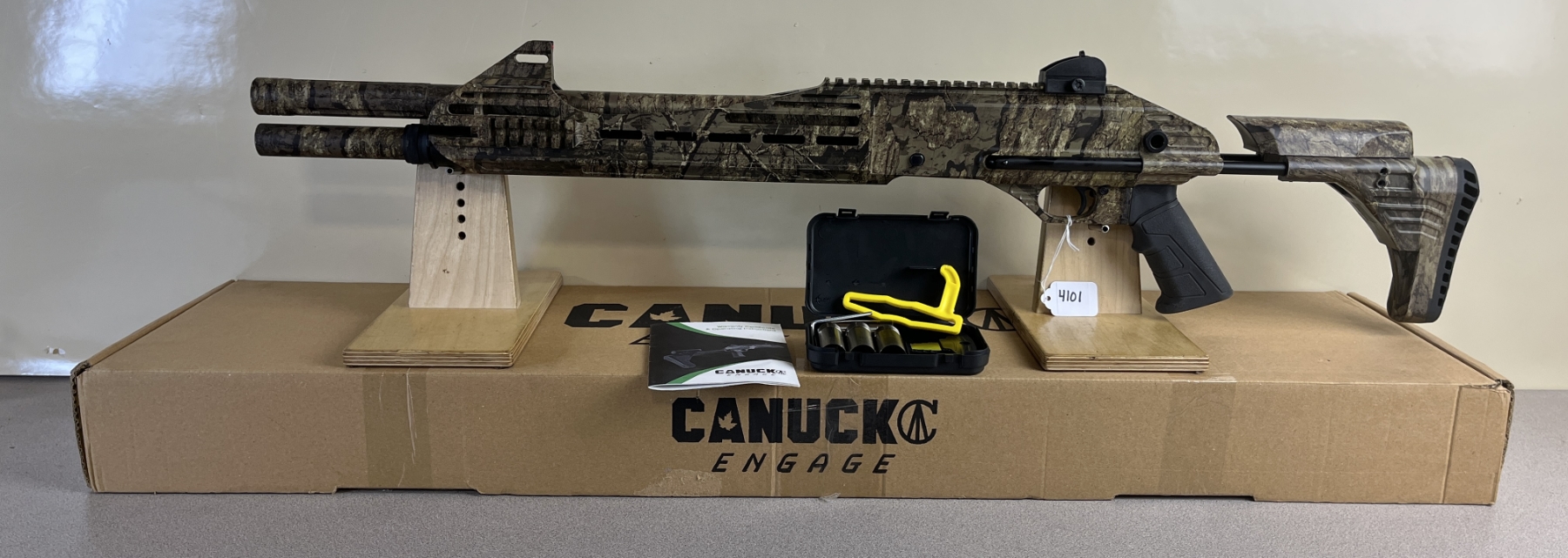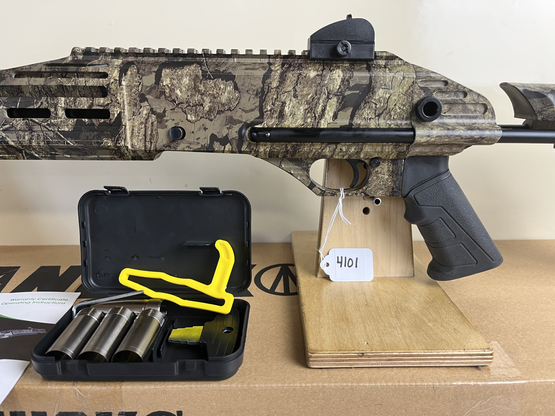 CONDITION: E OVERALL INCL BORE. SPECS: 18.5IN BBL. FIBRE OPTIC SIGHTS.REAL TREE CAMO FINISH. EXTRAS: ORIGINAL BOX  & MANUAL. 4X CHOKE TUBES. S/N: CA22-0111.