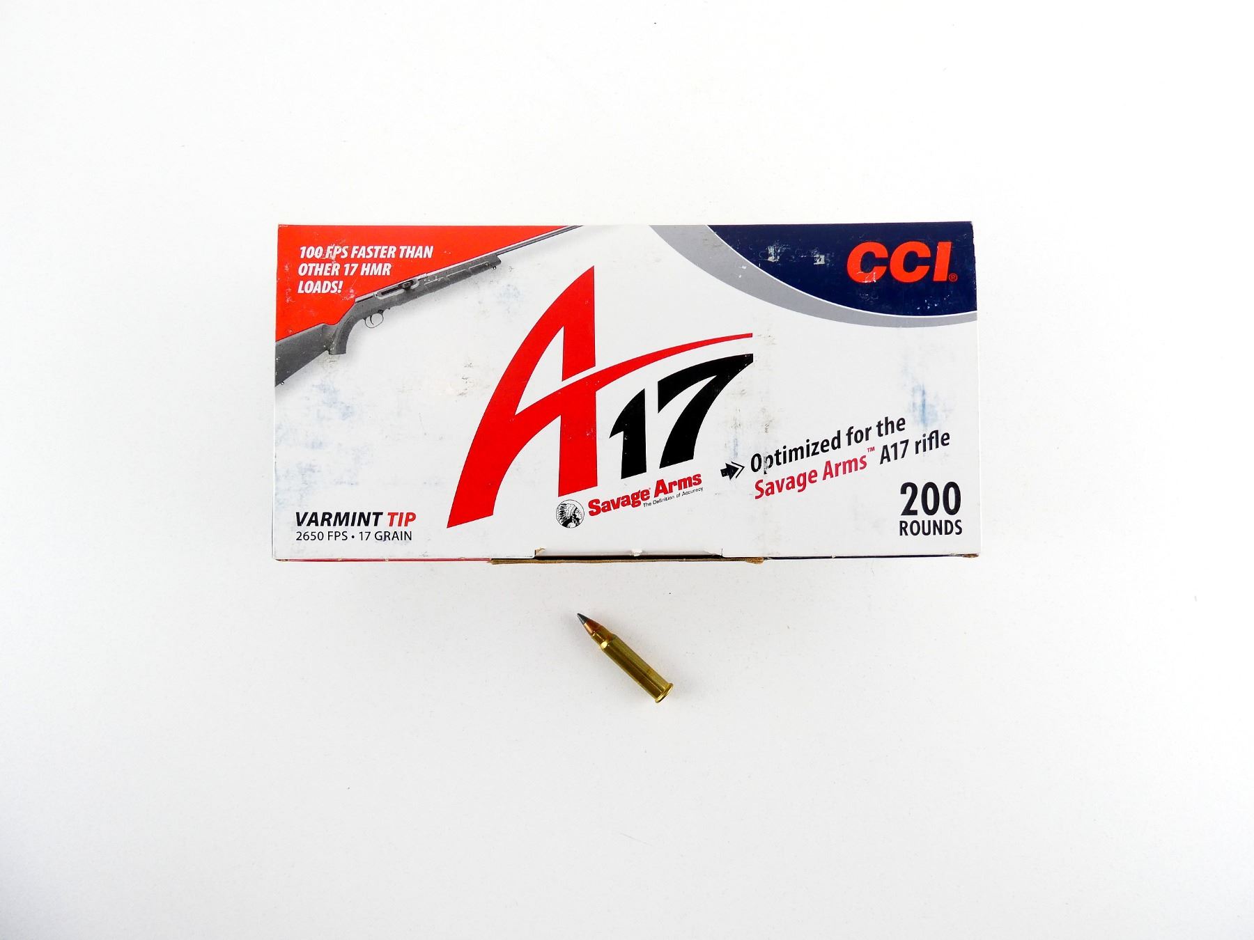LOT INCLUDES; APPROX. (200) RNDS, 17 GRNS (STATED ON BOX NOT CONFIRMED), VARMINT TIP.