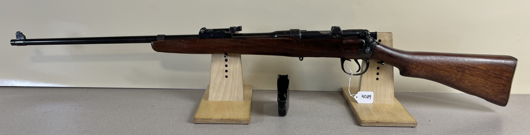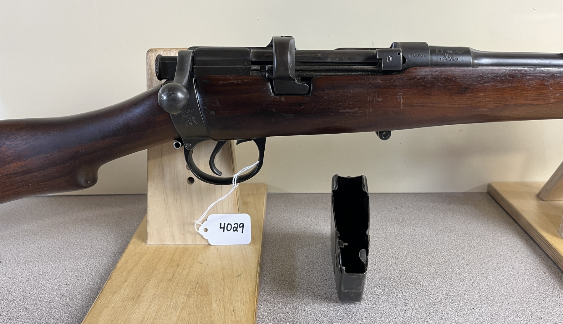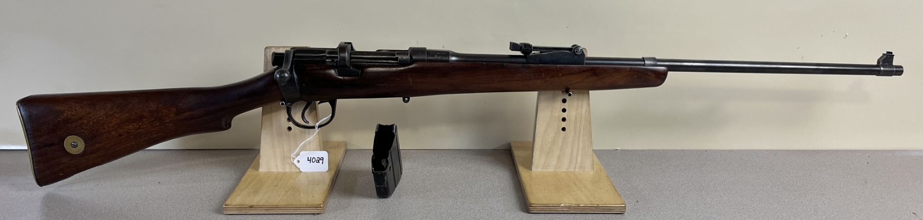 CONDITION: G OVERALL INCL BORE. SPECS: 25 1/4IN BBL W/ IRON SIGHTS. INCL 1X MAG BODY - MISSING FOLLOWER. CANADIAN BROAD ARROW STAMPED ON RECEIVER & BBL. EXTRAS: NONE. S/N: 49575. RECEIVER, BBL & BOLT MATCHING.