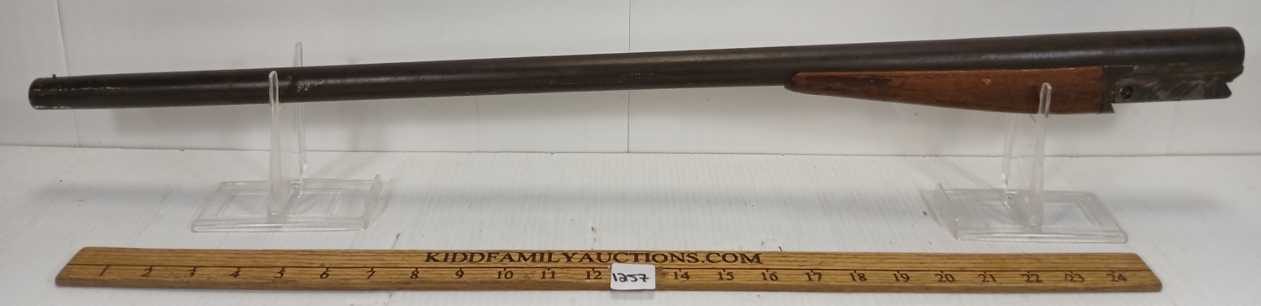 KIDD FAMILY AUCTIONS does not guarantee or make warranties on any lot sold. Ratings in the catalog are our opinion. We acknowledge that errors may occur although we endeavor to give you accurate information in what is written. We strongly recommend you personally view any item you bid on. We are closed Sundays. A gunsmith should be consulted before attempting to use or fire any firearm or ammunition. KIDD FAMILY AUCTIONS cannot be held liable.
