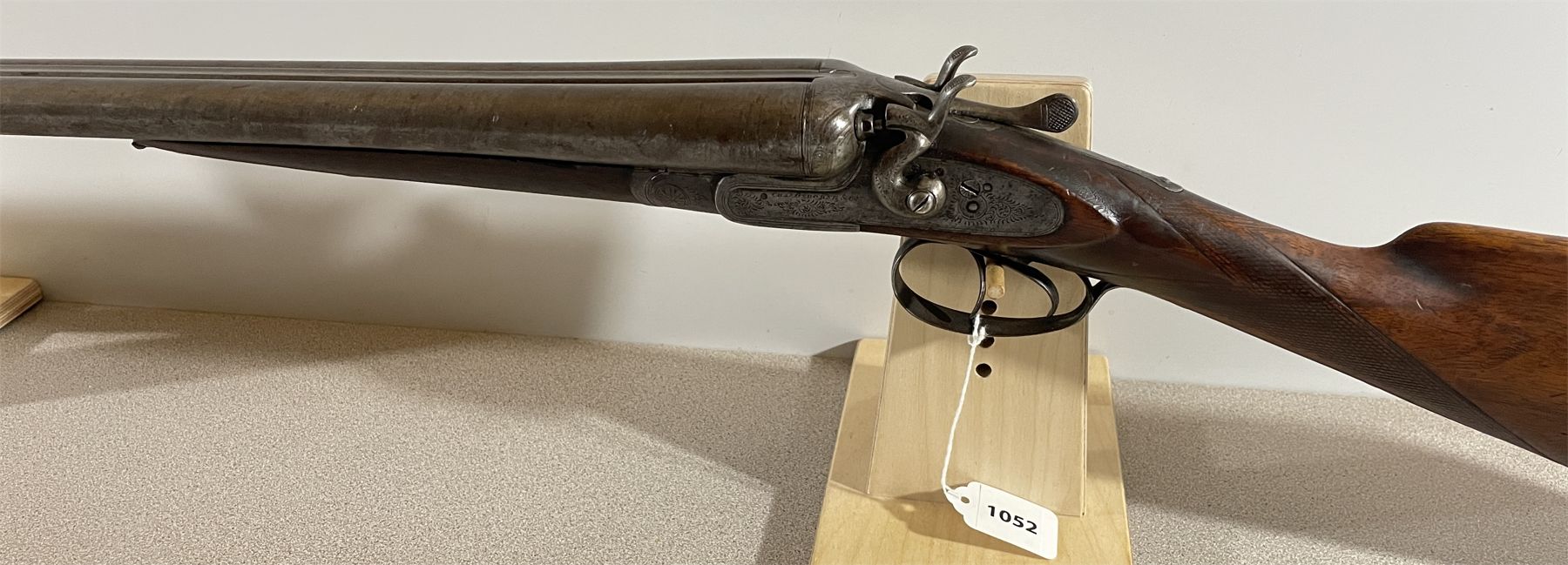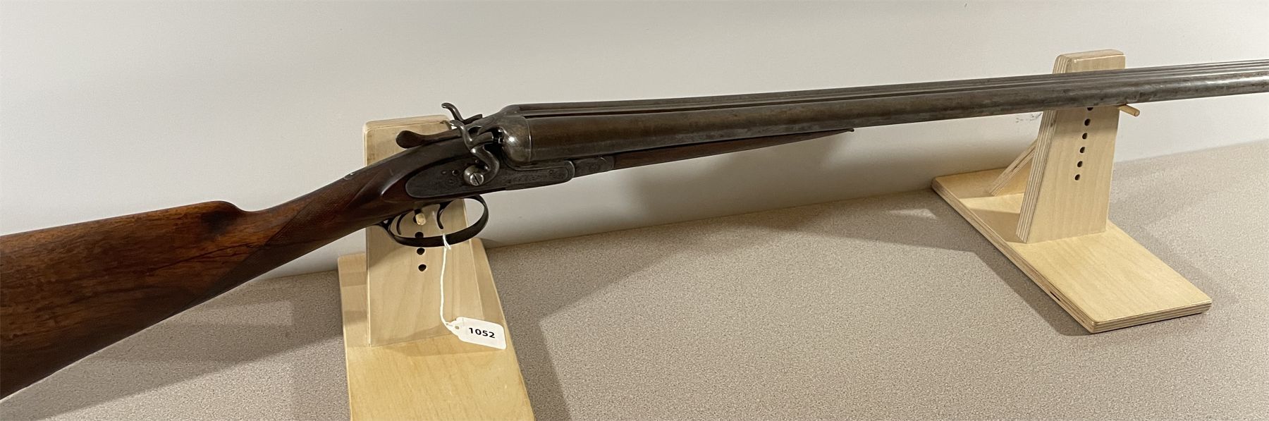 CONDITION: F - G OVERALL. BORE F. LIGHT PITTING. SPECS: 29.5 INCH DAMASCUS BARRELS. EXTRAS: NONE. S/N: 50005.