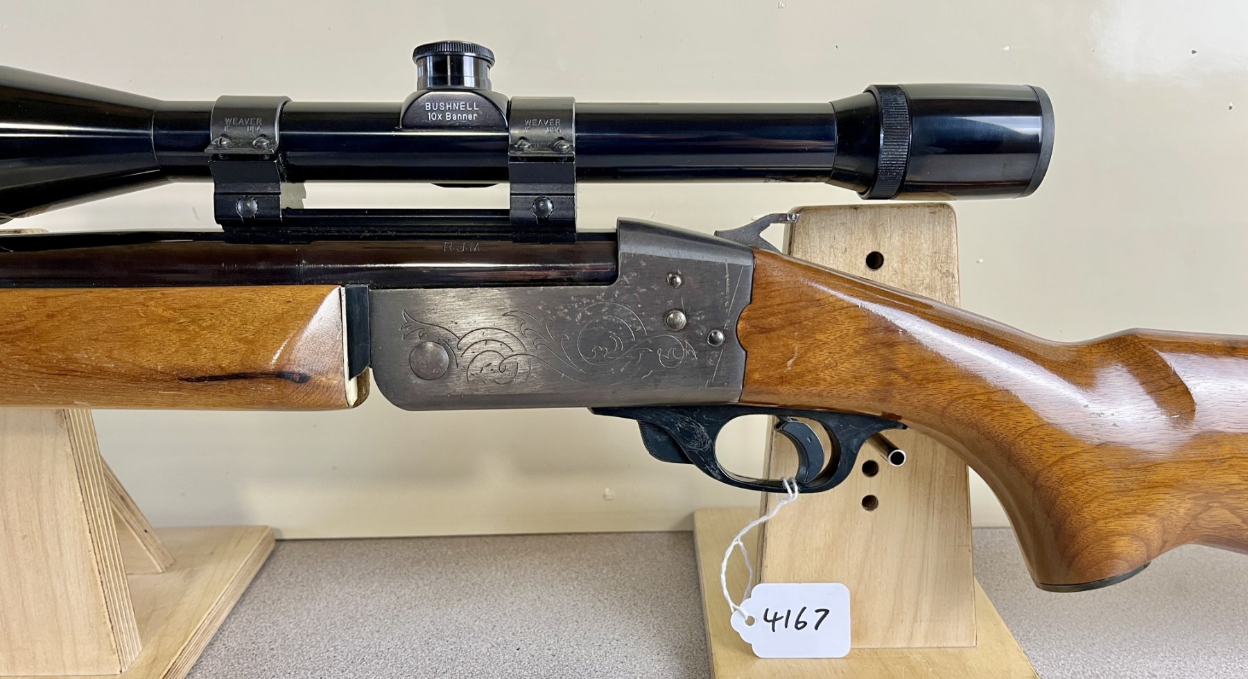 CONDITION: G OVERALL, BORE VG. SPECS: 23-3/4IN CUSTOM HEAVY BBL. EXTRAS: BUSHNELL 10X SCOPE CLEAR WITH CROSSHAIRS. S/N: 483976