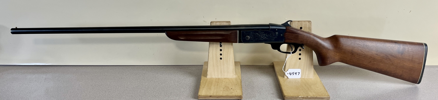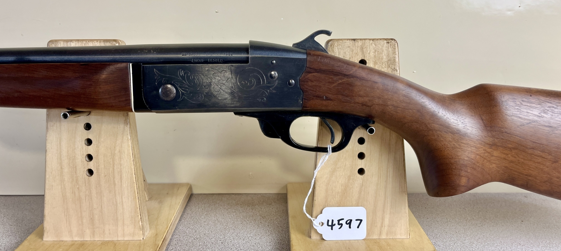 CONDITION: G-VG OVERALL INCL BORE. NOTE: SHOWS 2X MINOR CRACKS IN BUTTSTOCK AT RECEIVER. SPECS: 28IN BBL FIXED FULL CHOKE. EXTRAS: NONE. S/N: 75047