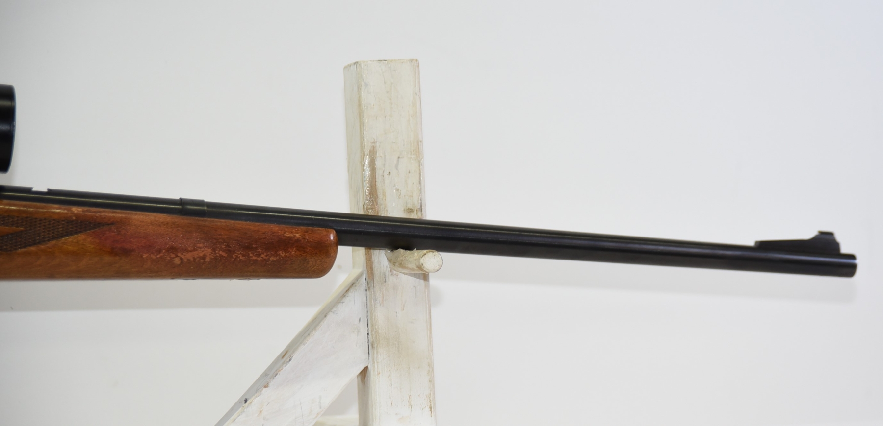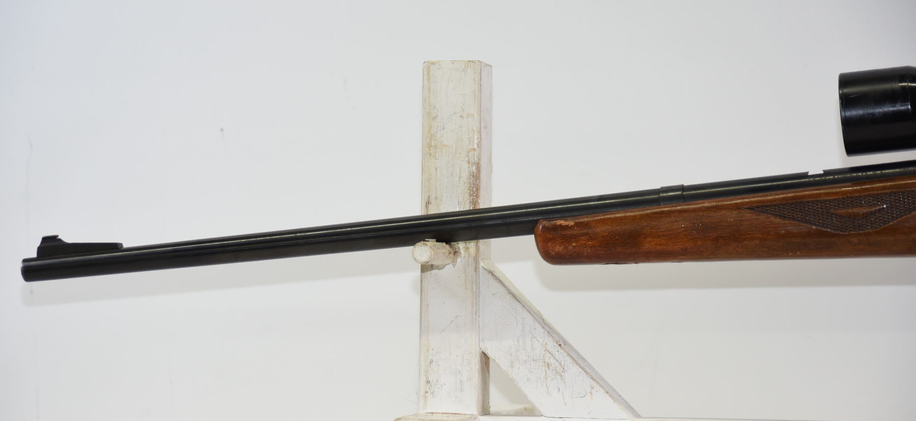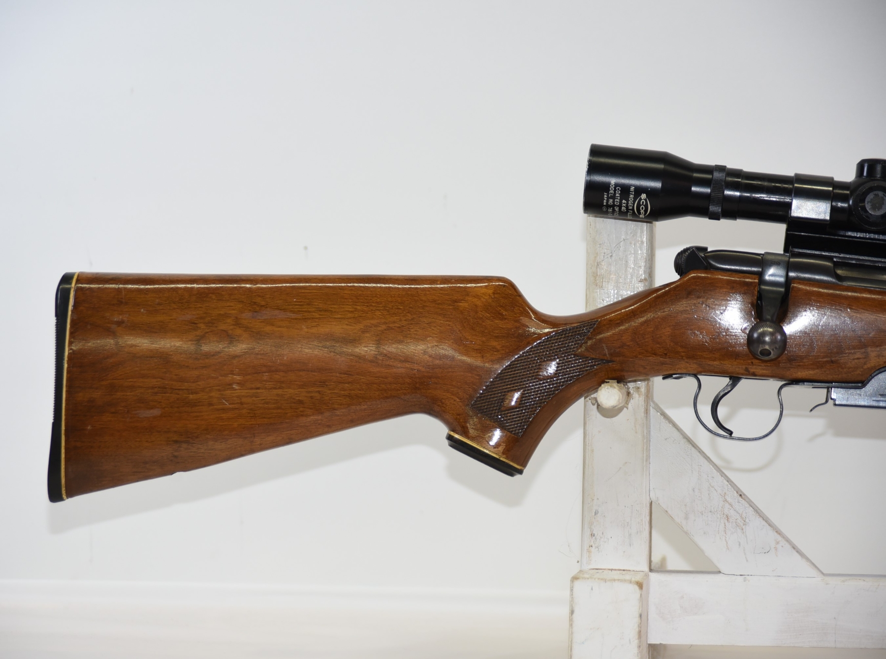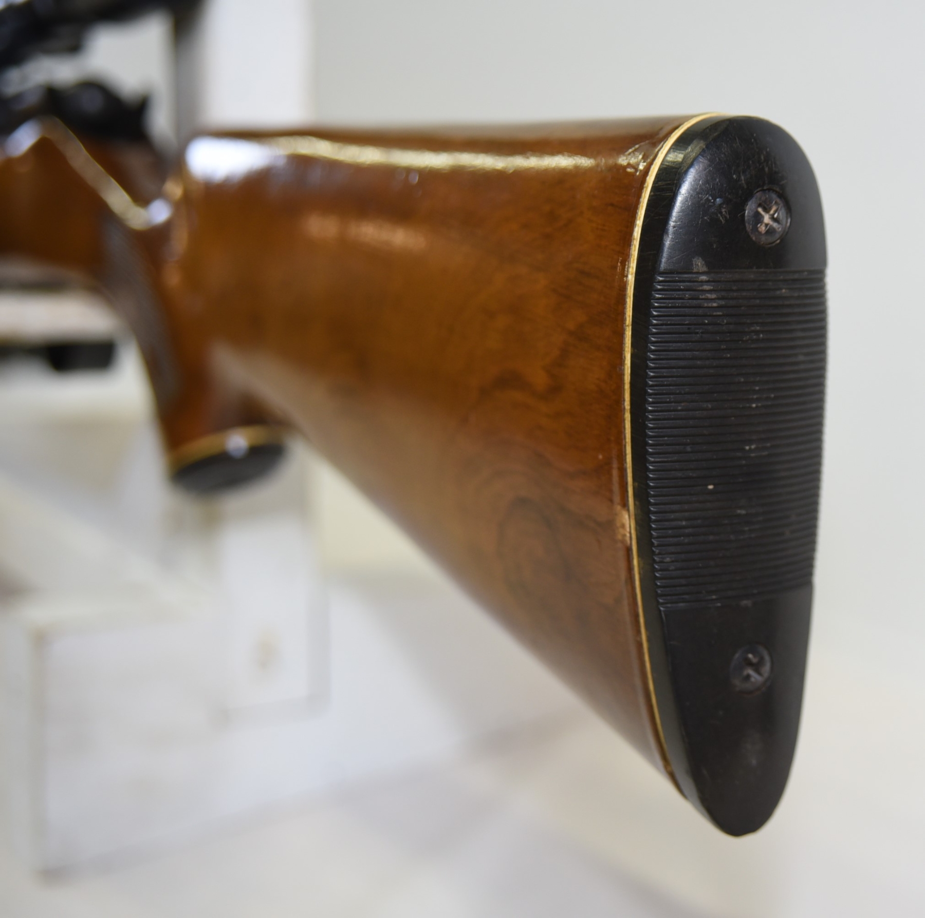 Wood stock shows scratches, scuffs, light dents, sling mount is missing; condition is good.