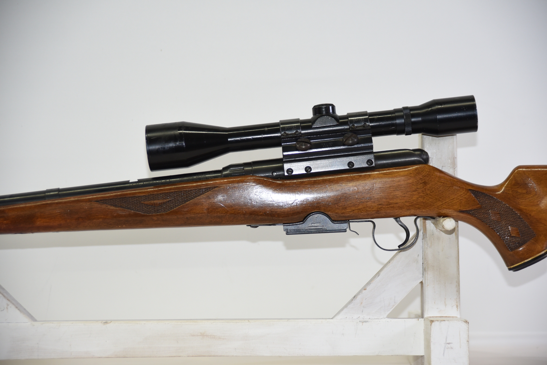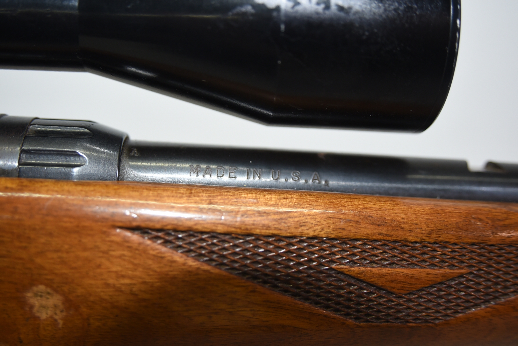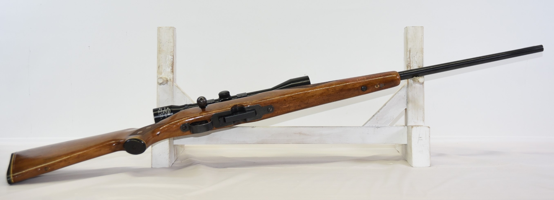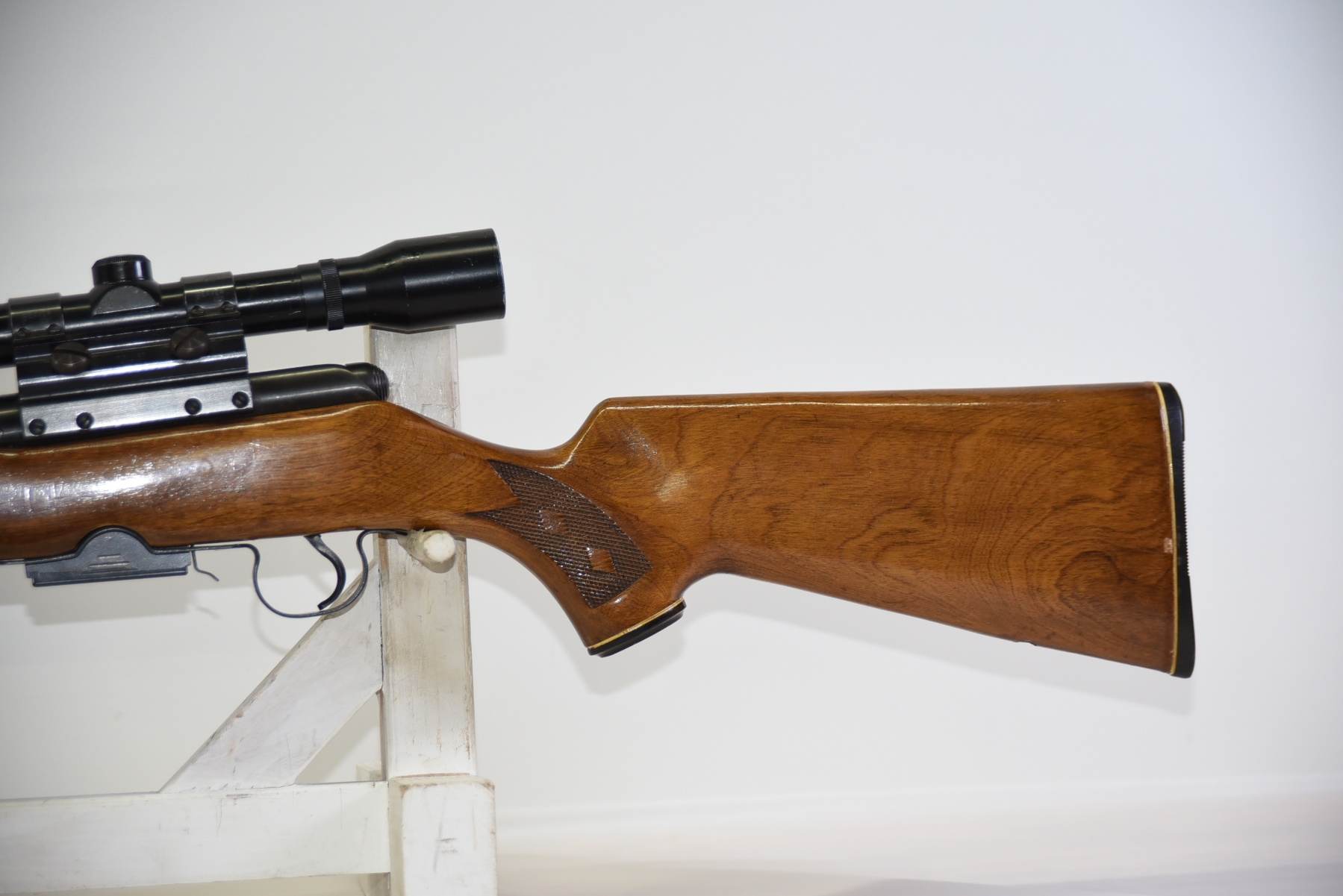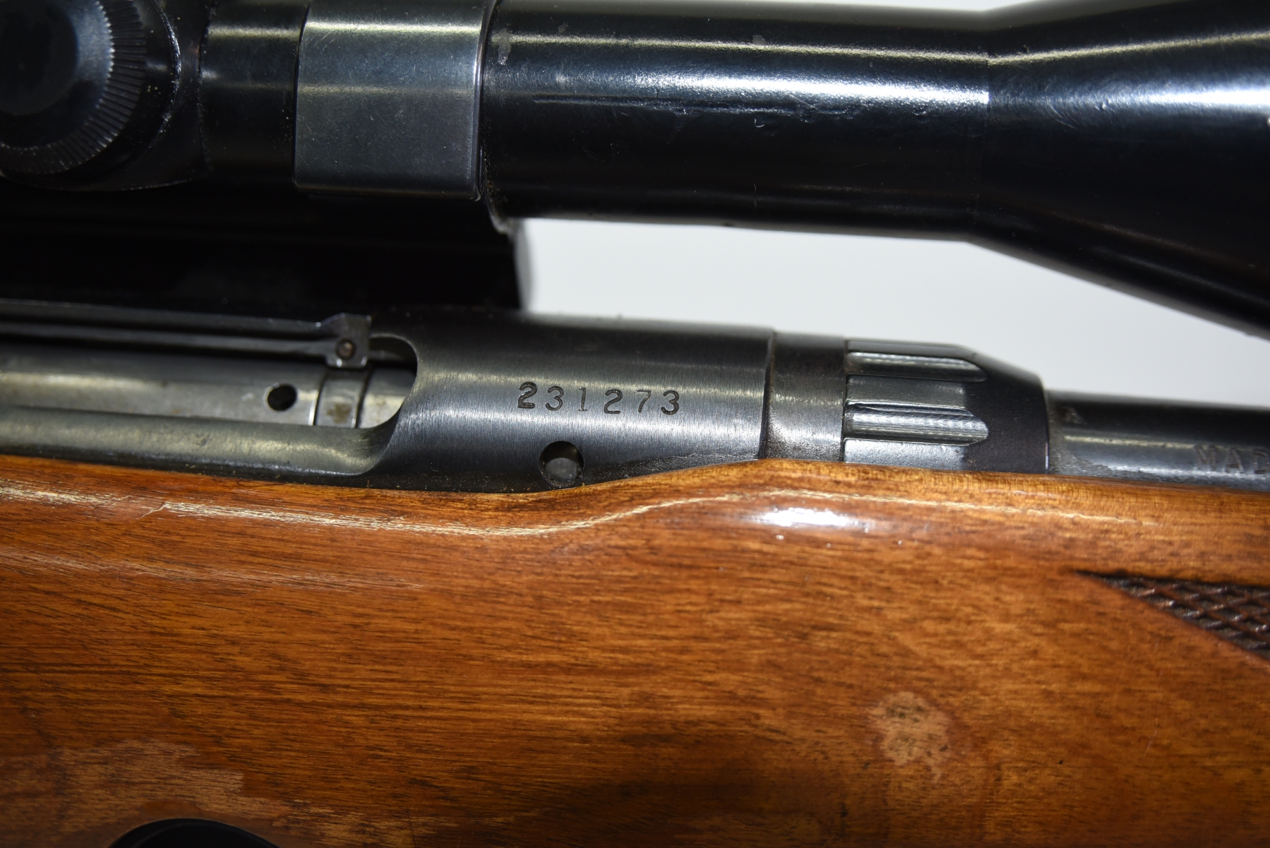 Wood stock shows scratches, scuffs, light dents, sling mount is missing; condition is good.