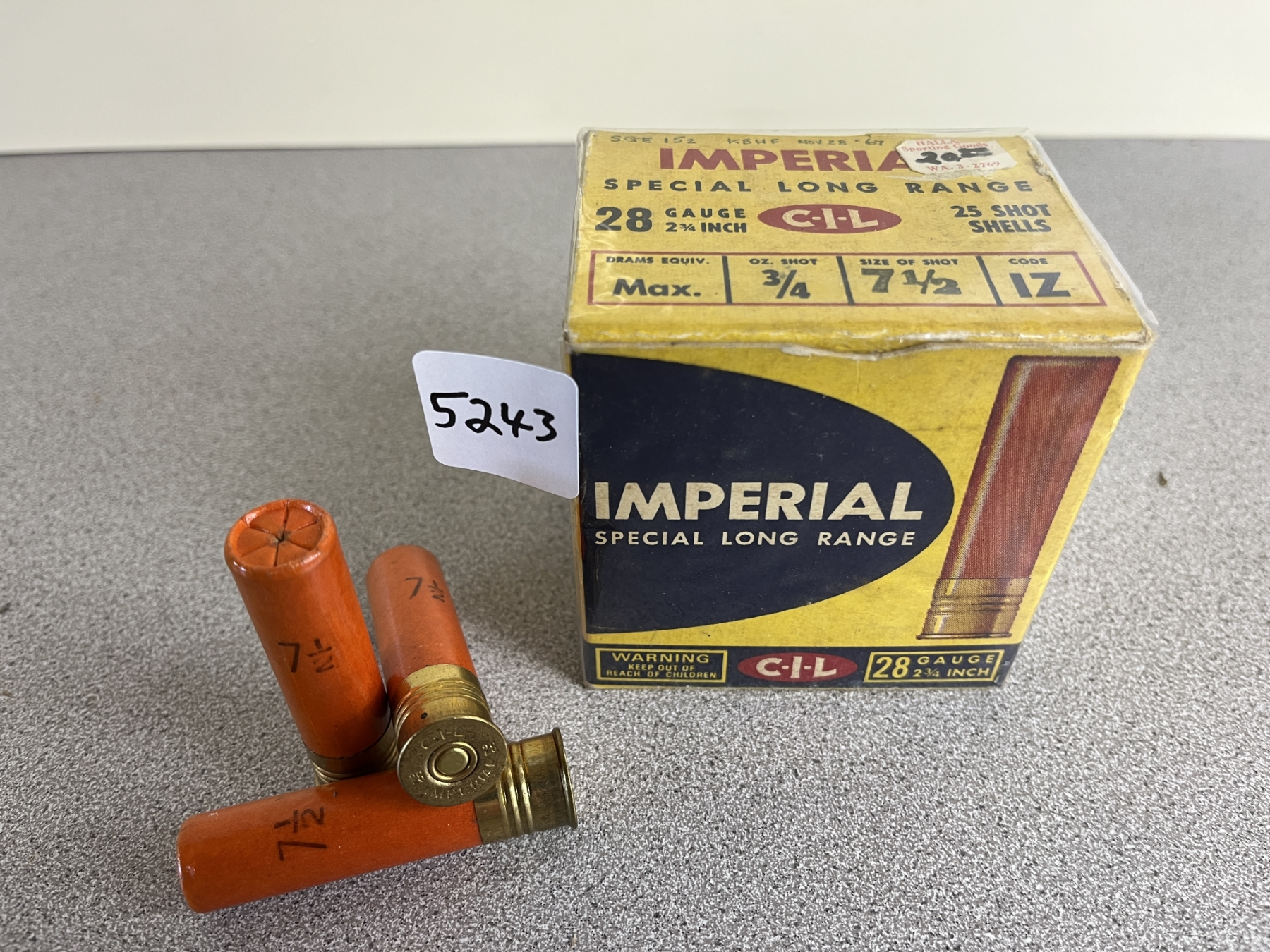COLLECTABLE AMMO: 25X IMPERIAL SPECIAL LONG RANGE 28 GA 2-3/4IN -3/4 OZ NO7-1/2 SHOT