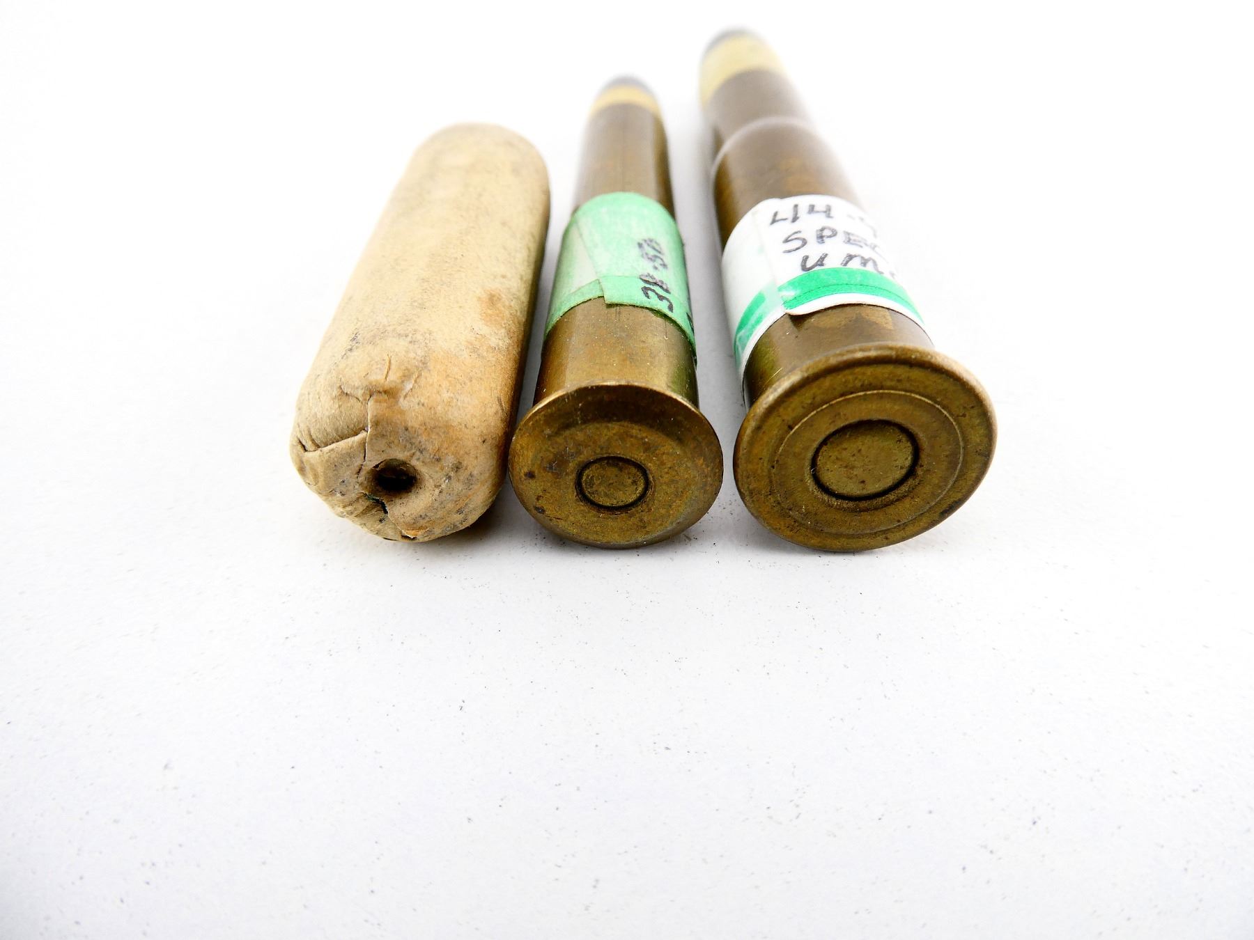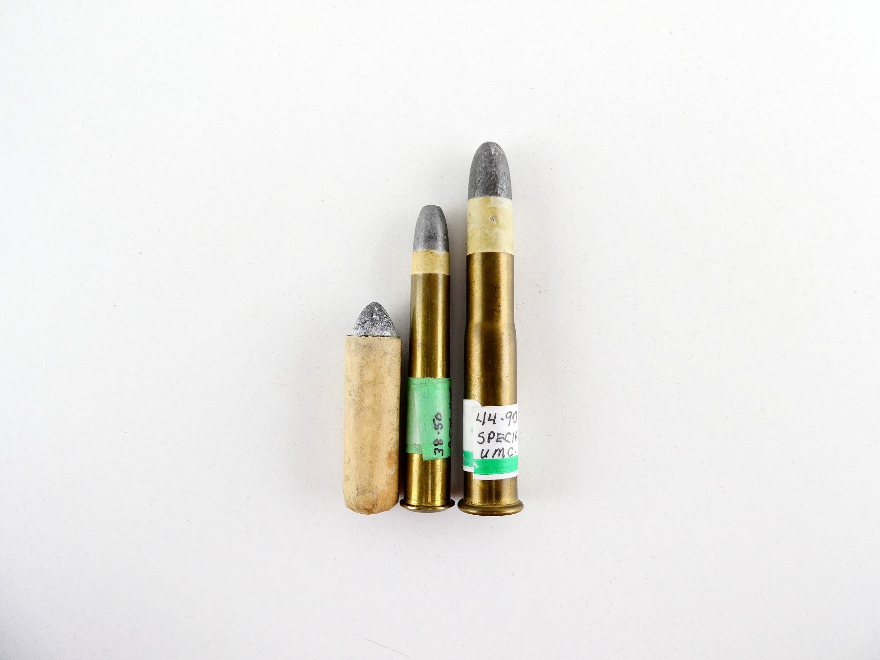 LOT INCLUDES; APPROX. (3) RNDS, VARIOUS CALIBERS INCLUDING; .38-50 REM, .44-90 2 7/16" REM, PAPER PATCH BULLET, SEE PHOTOS.