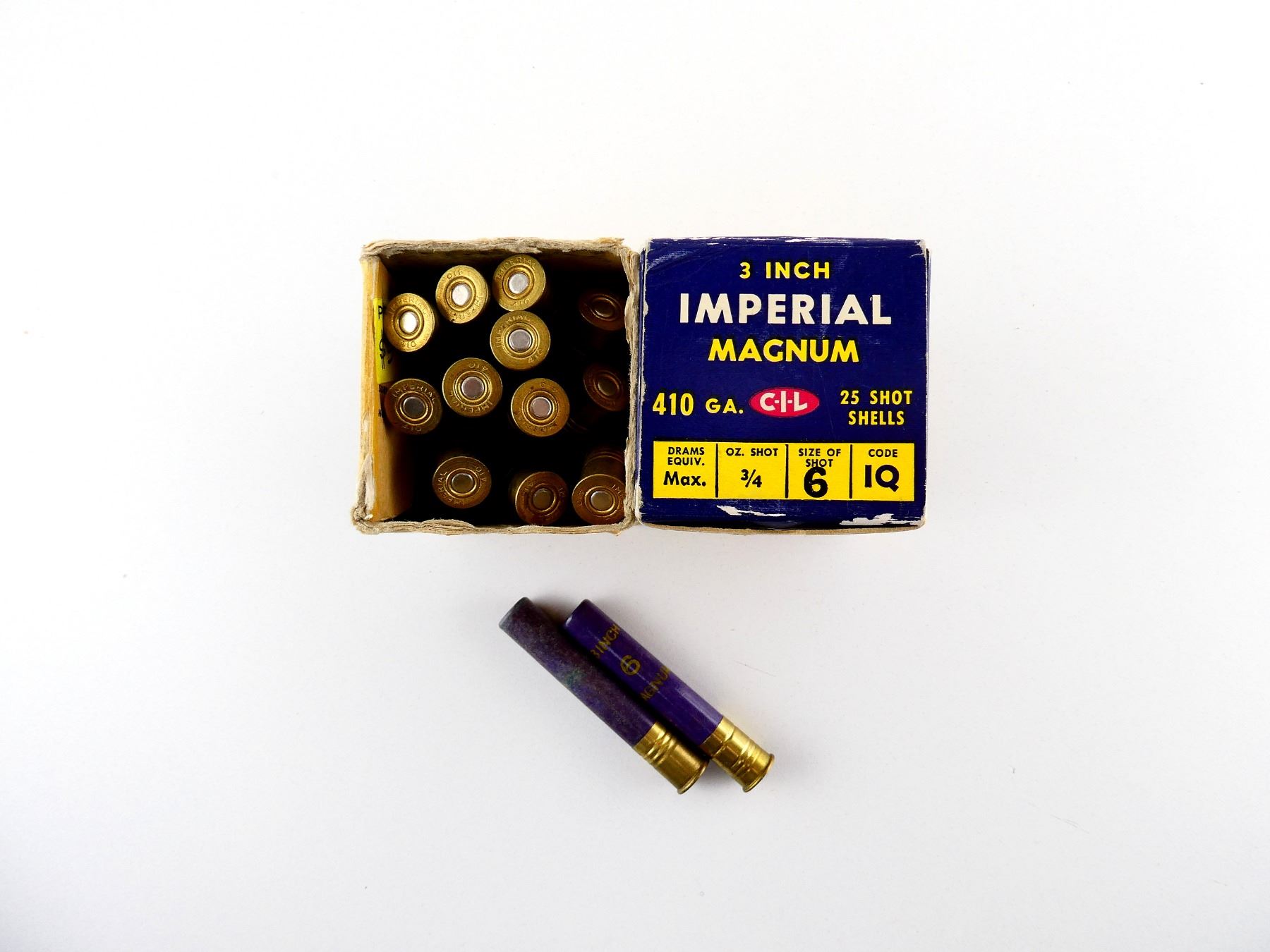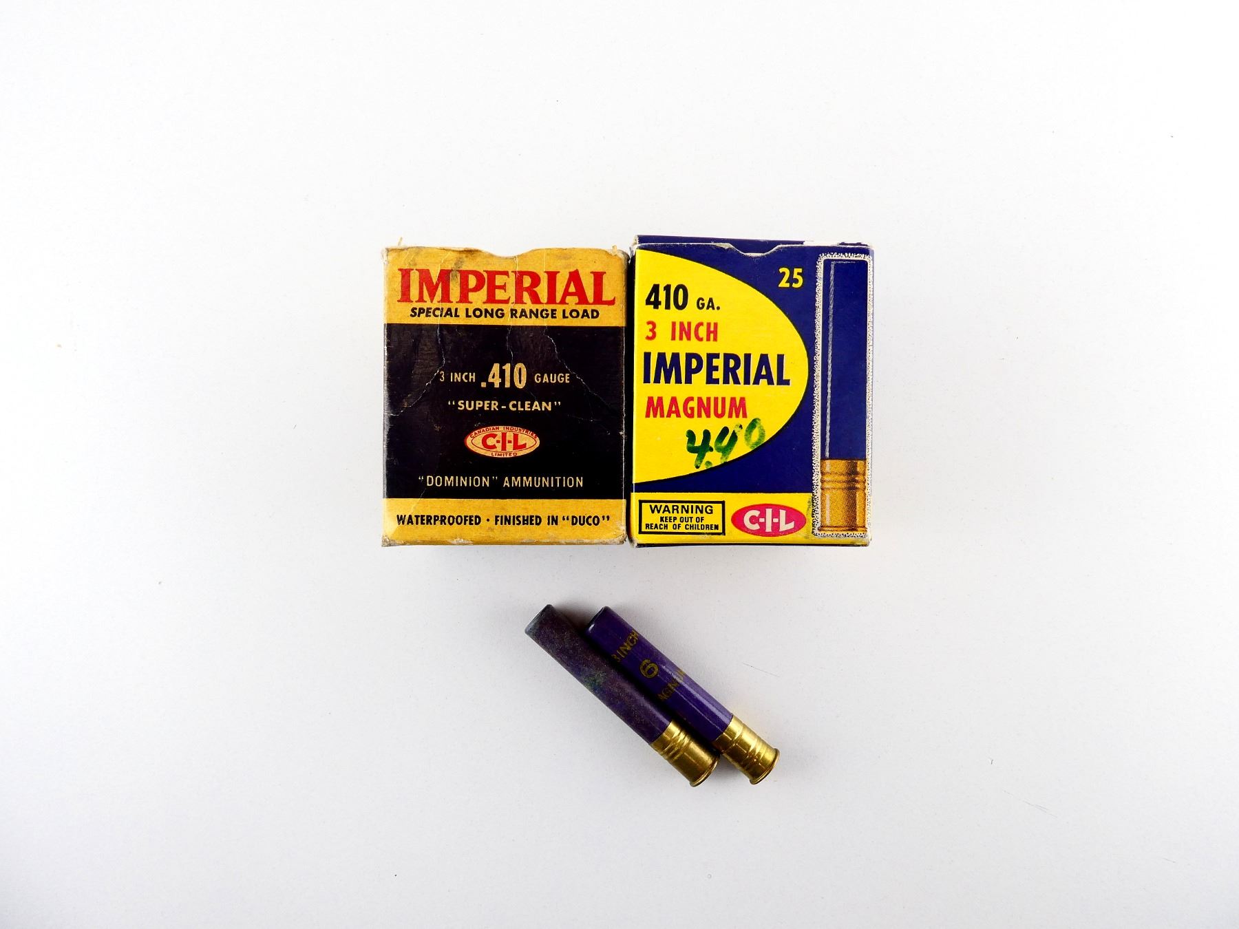 COLLECTIBLE ASSORTED IMPERIAL .410 GAUGE 3" SHOT AND 3" MAGNUM SHOT SHELL AMMO LOT