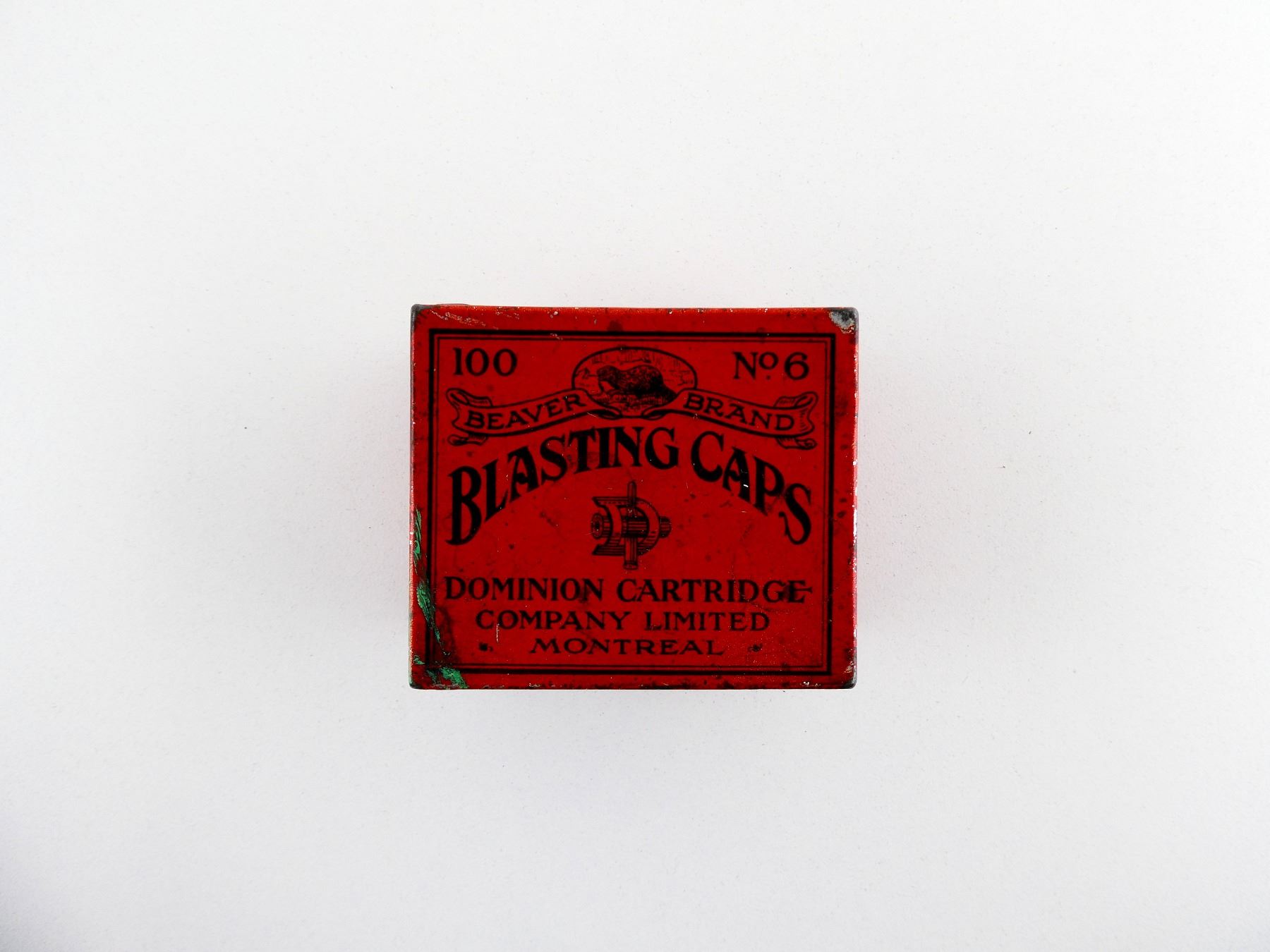 LOT INCLUDES; (1) BEAVER BRAND BLASTING CAPS EMPTY TIN BOX, SEE PHOTOS.