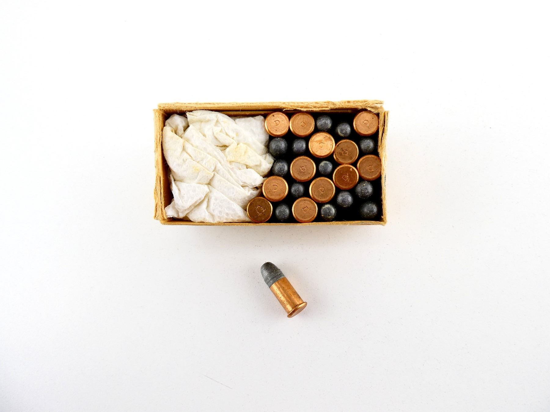 LOT INCLUDES; APPROX. (26) RNDS, 80 GRNS (STATED ON BOX NOT CONFIRMED), BULLET, IN ORIGINAL COLLECTIBLE BOX, SHOWS SOME WEAR, SEE PHOTOS.