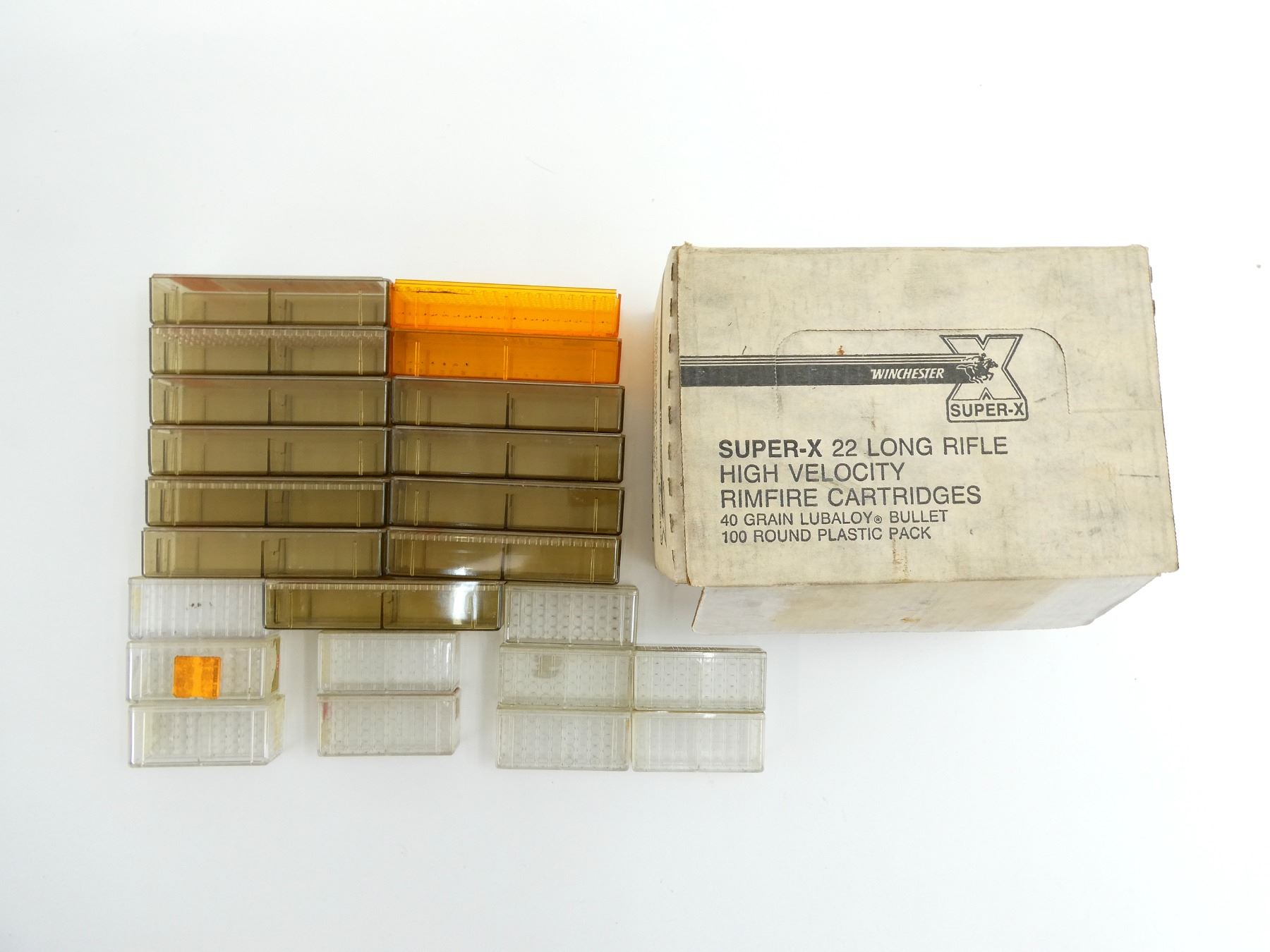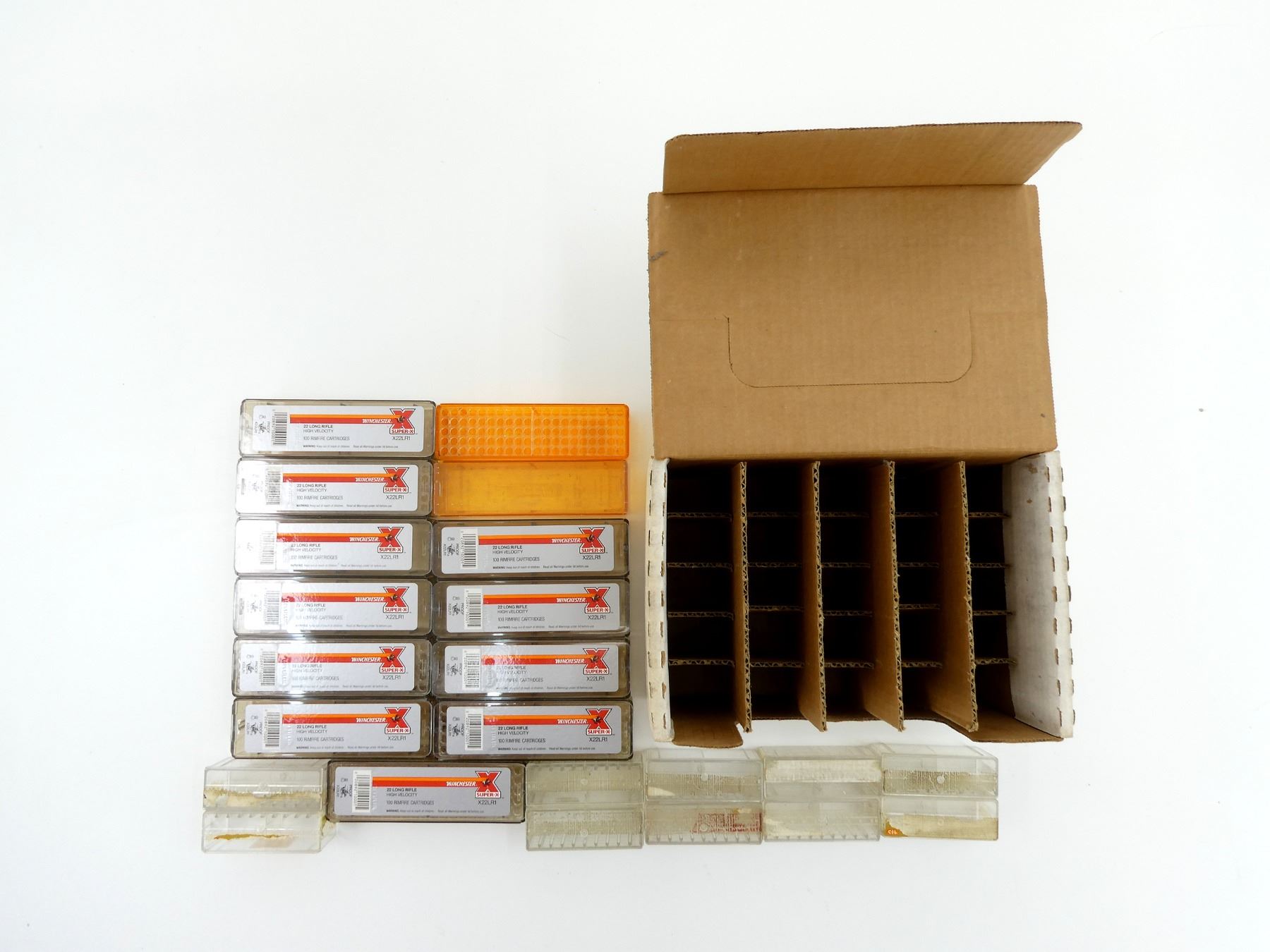 COLLECTIBLE EMPTY ASSORTED PLASTIC AMMO BOXES LOT