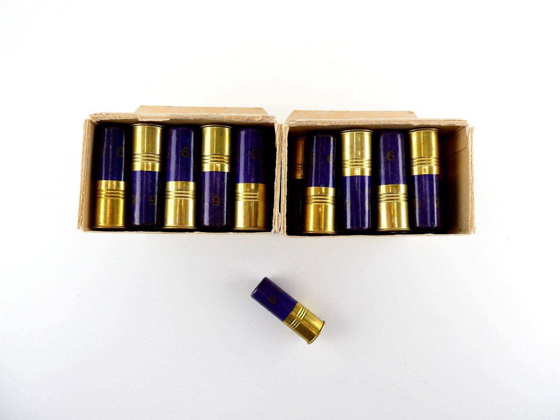 LOT INCLUDES; APPROX. (50) RNDS, SHOT SIZE #6, IN ORIGINAL COLLECTIBLE BOXES, SHOWS SOME WEAR, SEE PHOTOS.