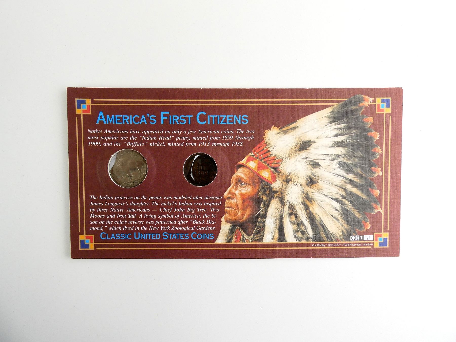 LOT INCLUDES; (1) NATIVE AMERICAN PENNY, DATED 1899 & (1) BUFFALO NICKEL, DATED 1935, SET IN CARDBOARD WITH VARIOUS INFORMATION ABOUT THE SET. SEE PHOTOS.
