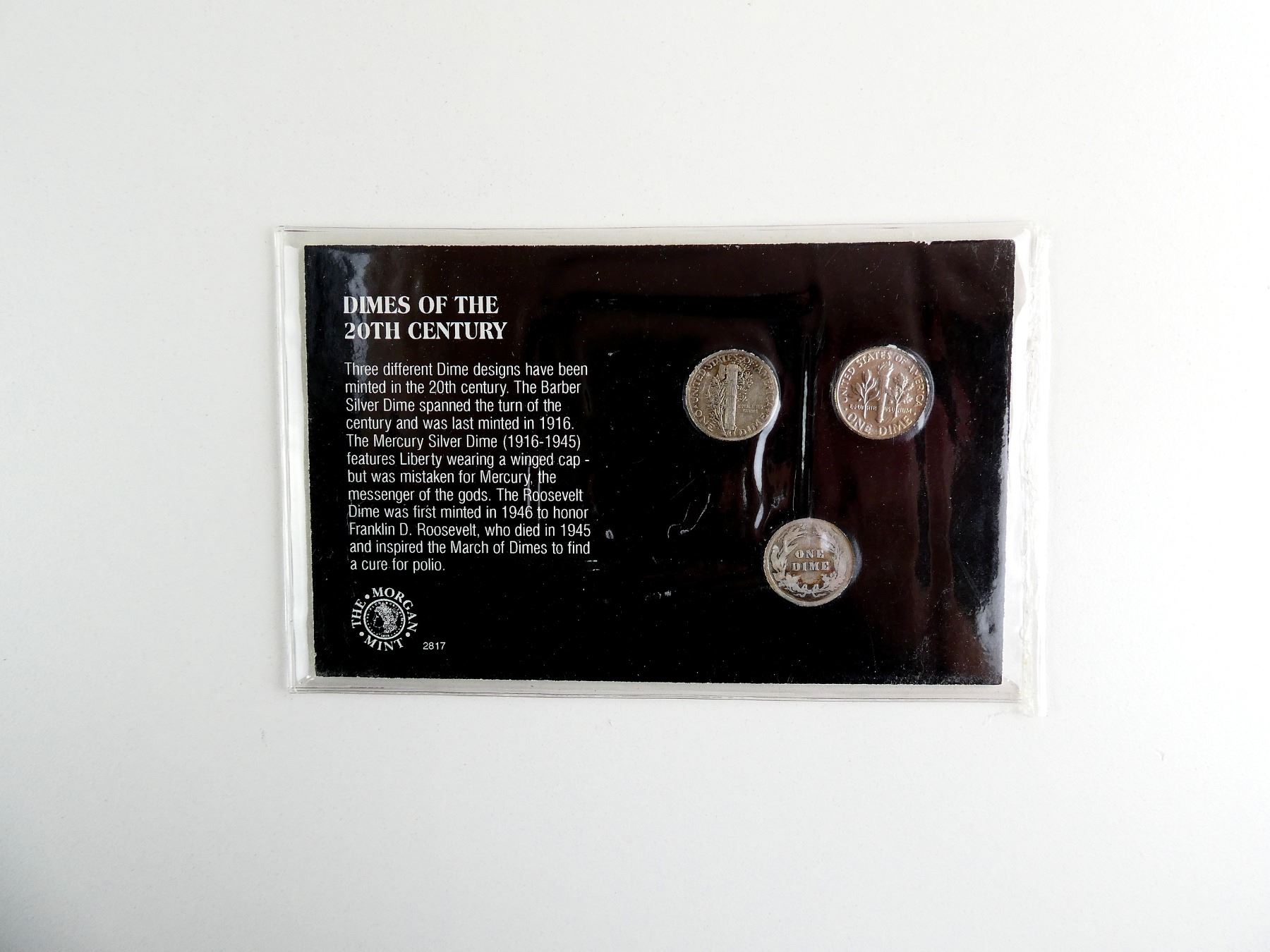 LOT INCLUDES; (1) BARBER SILVER DIME, DATED 1905, (1) MERCURY SILVER DIME, DATED 1942 & (1) ROOSEVELT DIME, DATED 1979, SET IN CARDBOARD WITH VARIOUS INFORMATION ABOUT COINS / SET. SEE PHOTOS.