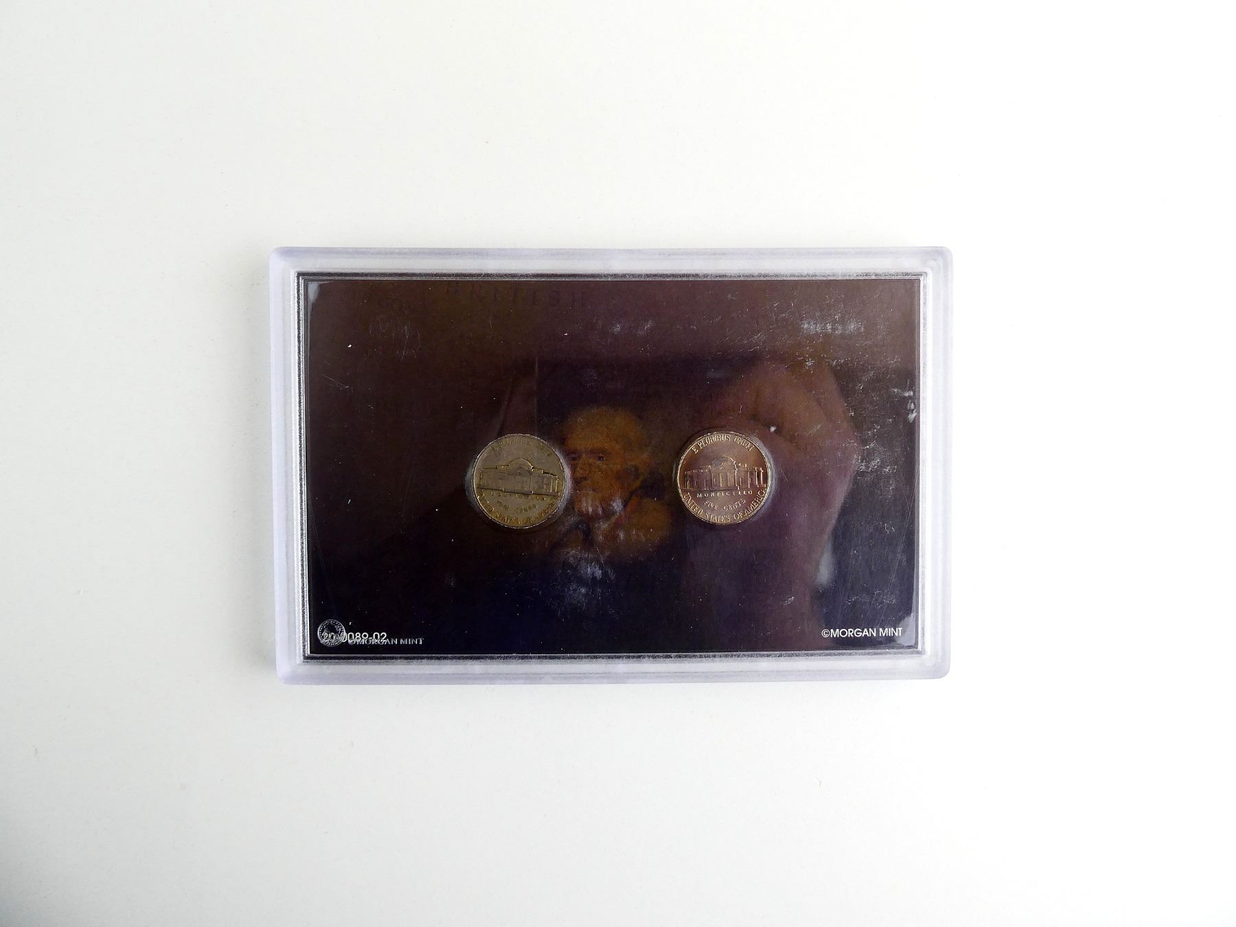 LOT INCLUDES; (1) 1938 DATED JEFFERSON NICKEL & (1) 2003 JEFFERSON NICKEL, BOTH IN PROTECTIVE PLASTIC CASE. SEE PHOTOS.