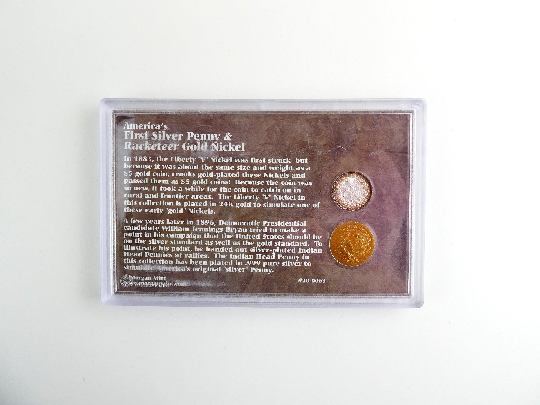 COLLECTIBLE U.S. FIRST SILVER PENNY AND RACKETEER GOLD NICKEL SET