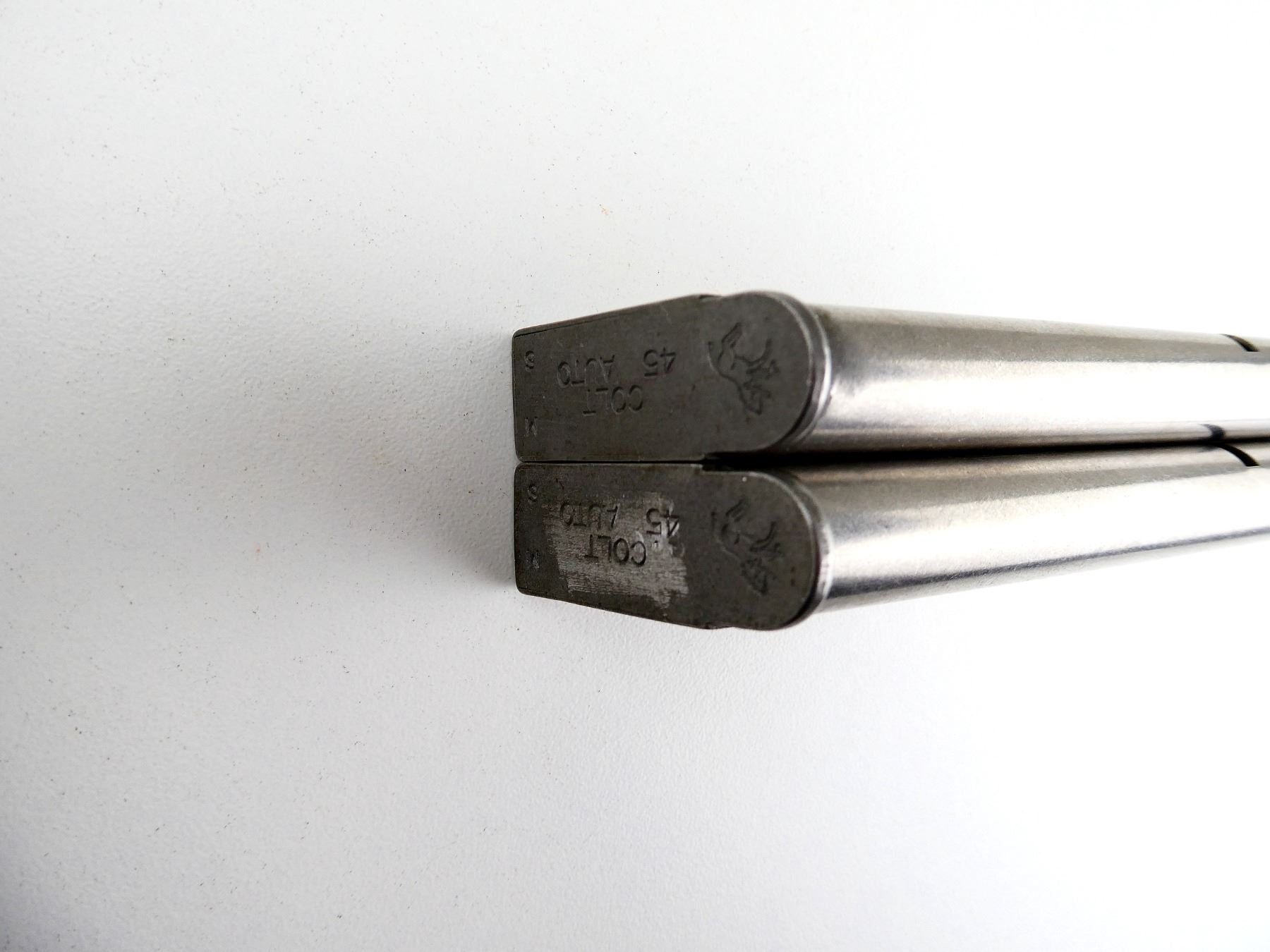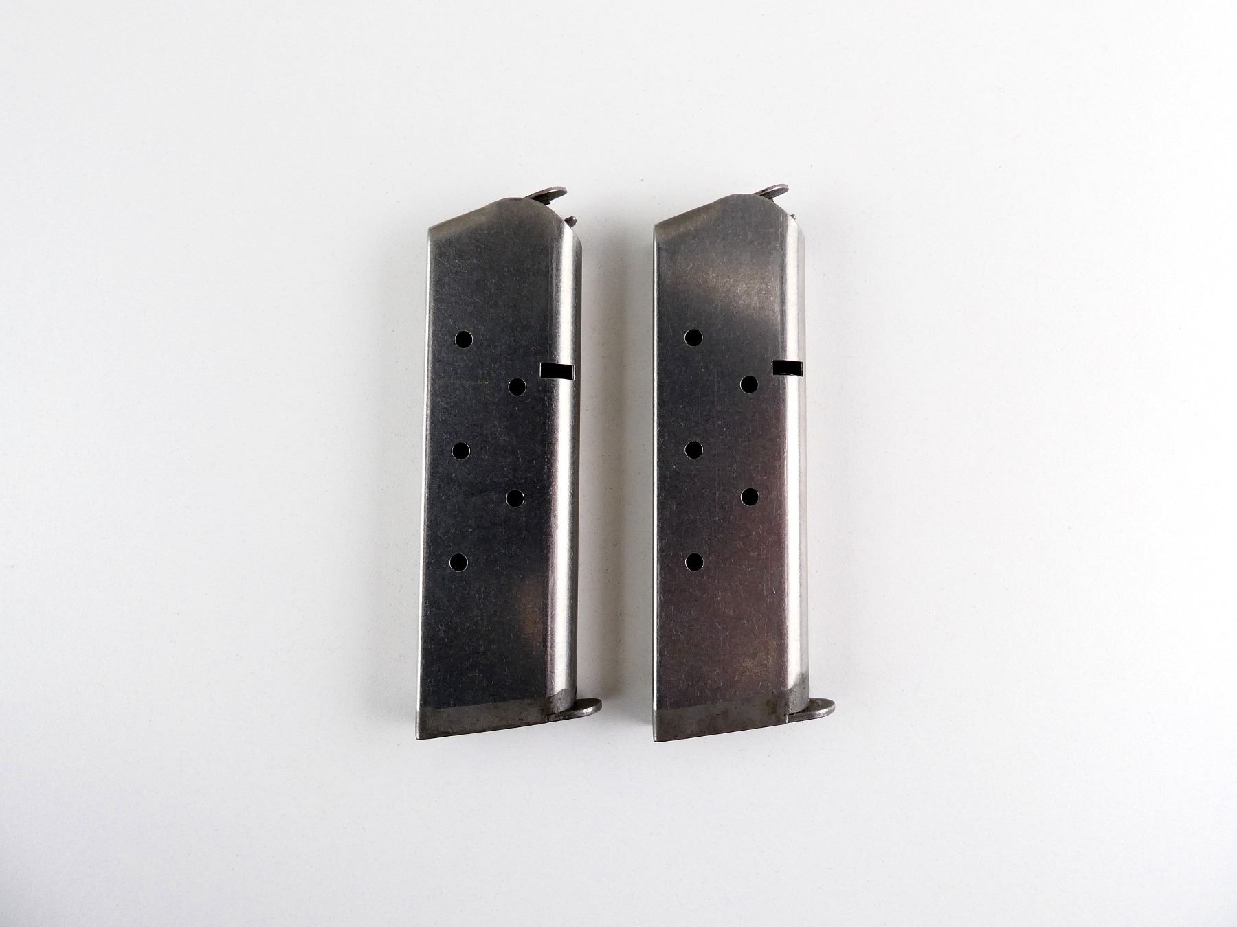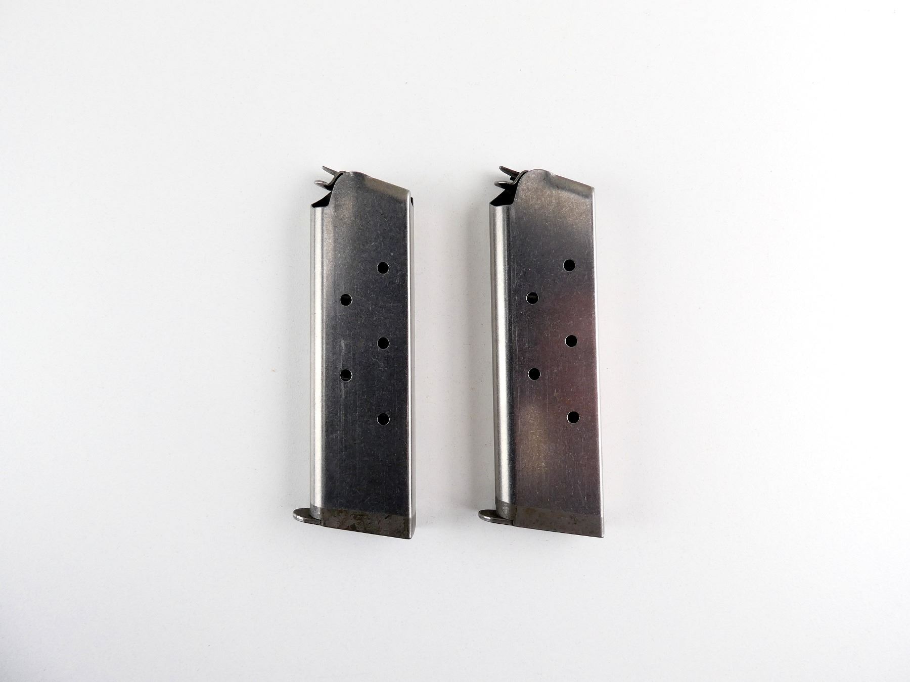 LOT INCLUDES; (2) 1911 .45 ACP MAGS, 8 RNDS, STAINLESS STEEL CONSTRUCTION, BASE MARKED: "COLT, 45 AUTO, 8-RND". SEE PHOTOS. PAL REQUIRED.