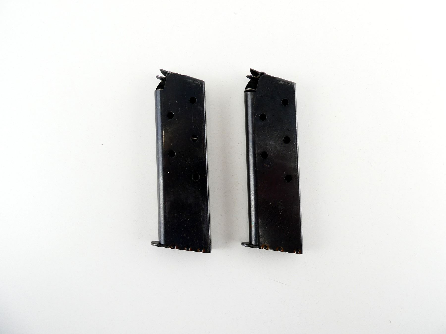 LOT INCLUDES; (2) 1911 .45 ACP MAGS, 7 RNDS, BLUED STEEL CONSTRUCTION, BASE MARKED: "COLT, 45 AUTO". SEE PHOTOS. PAL REQUIRED.
