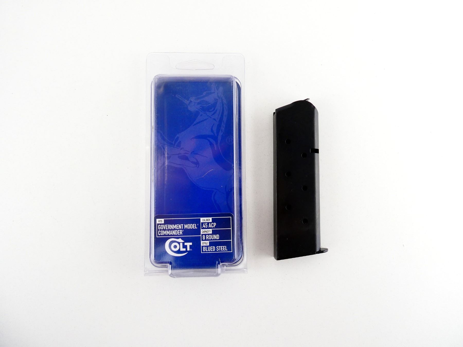 (1) .45 ACP MAG, 8 RNDS, BLUED STEEL CONSTRUCTION, BASES MARKED: "COLT, 45 AUTO", APPEARS NEW OLD STOCK IN ORIGINAL PACKAGING. SEE PHOTOS. PAL REQUIRED.