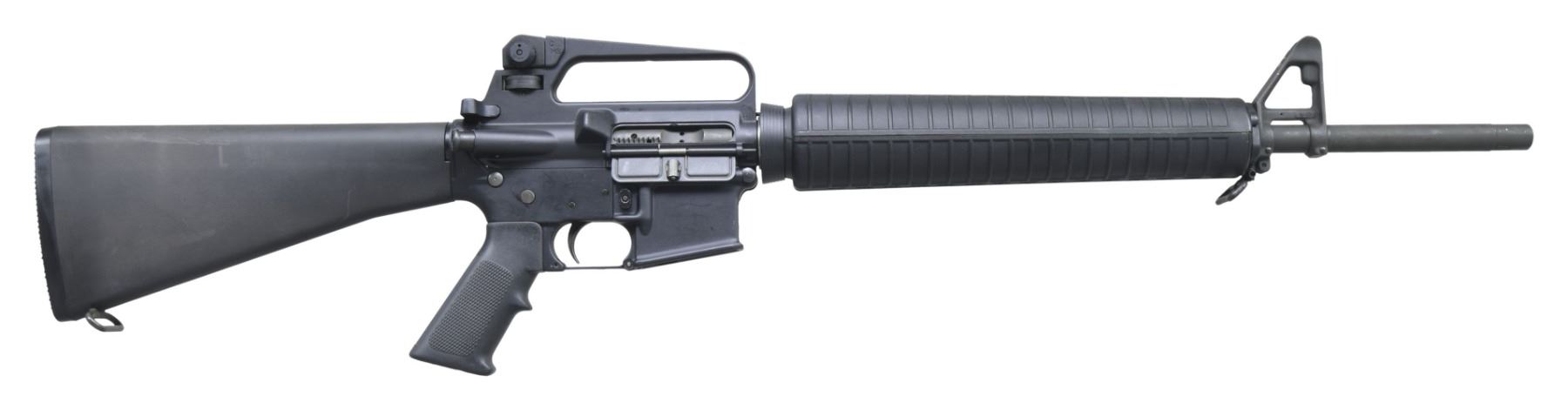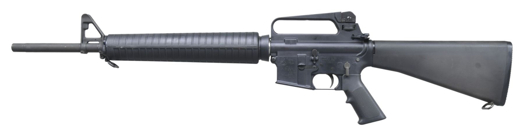 Cal. 5.56 NATO. S# CMH016802. Bbl. 20" with 1/7" twist. A2 sights. Post ban AR-15A2 config. rifle. Trigger appears to be aftermarket & Accu-wedge present. Two-headed front pivot pin. Fixed carry handle. Gray parkerized & black anodized finishes. "Half-moon" semi auto bolt carrier. A2 furniture with tapered delta ring. Bottom mounted sling swivels. MAGS: none present. CONDITION: furniture shows scattered handling marks & usage wear. Metal retains 95% original phosphate & anodized finishes with scattered handling marks & some light edge wear. Action functions properly when hand cycled. Very good bright bore. (25-3886/MJC). MODERN. $600-900.