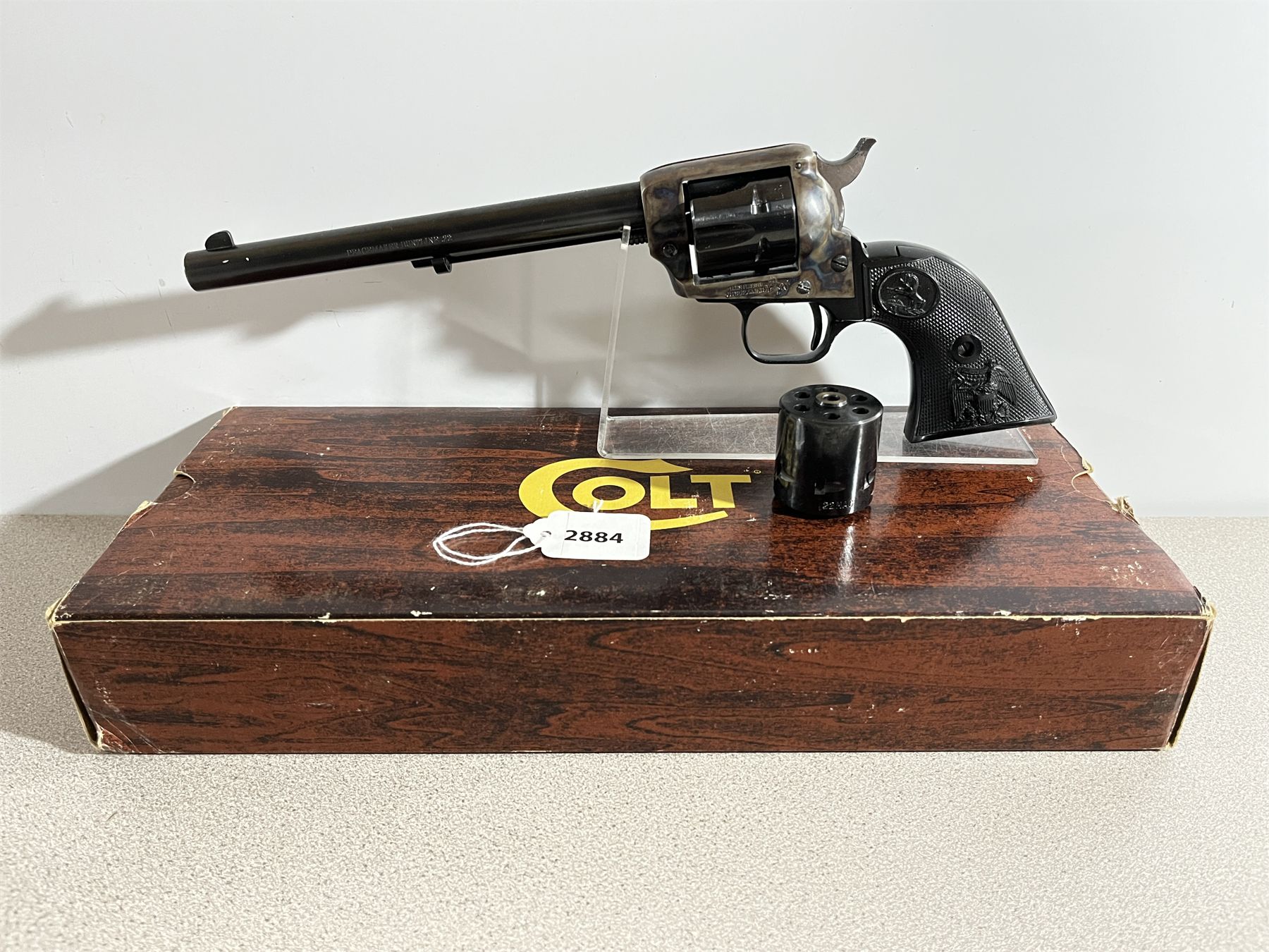 CONDITION: E - UNFIRED. SPECS: 190 MM BARREL. 6 SHOT REVOLVER. EXTRAS: .22 MAG CYL. ORIG BOX. S/N: G116216.