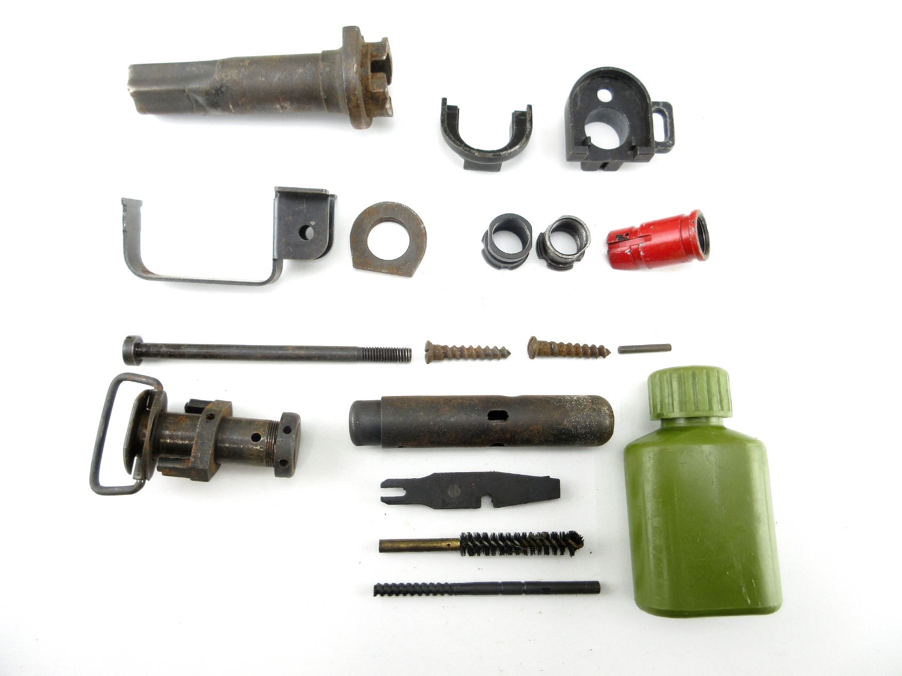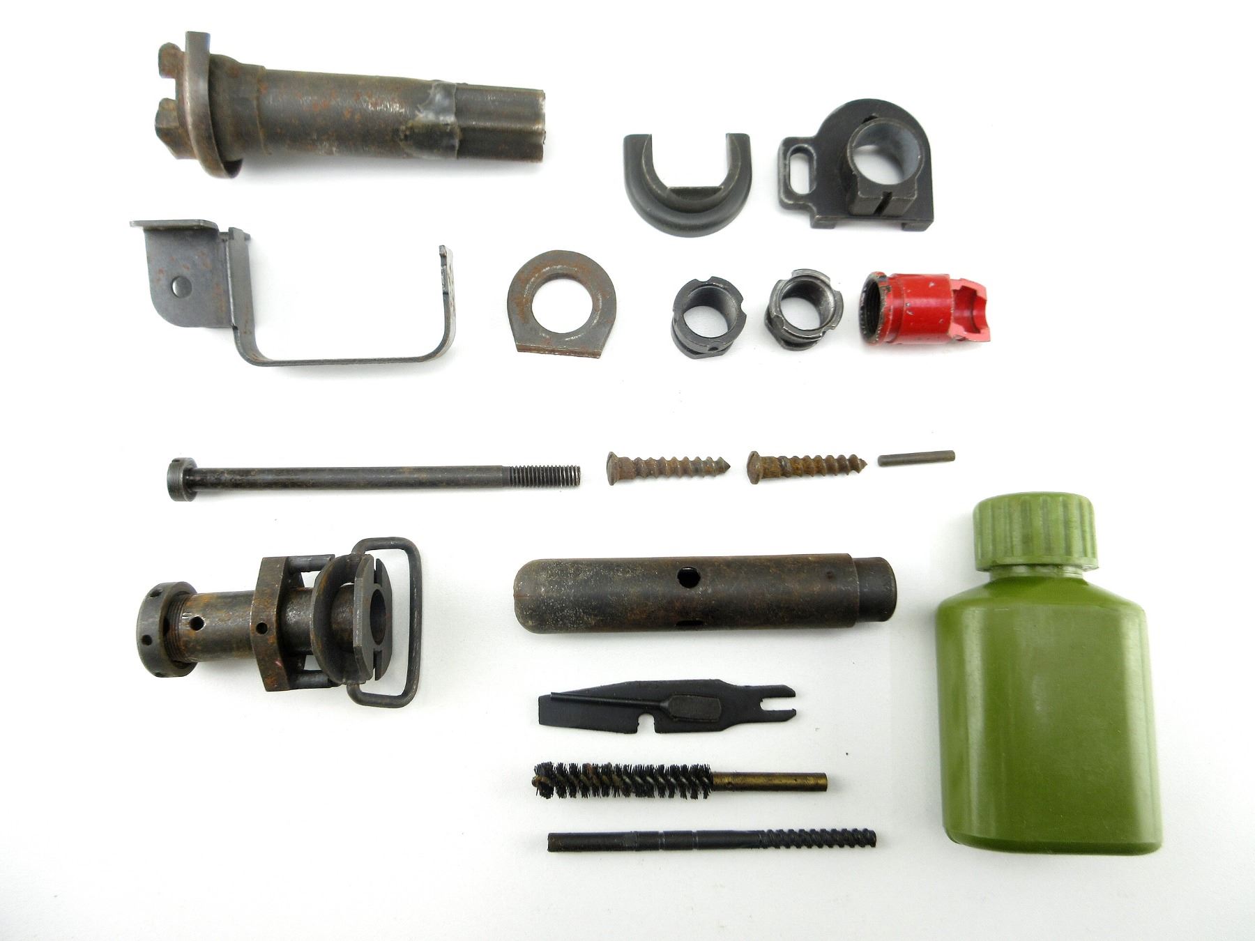 LOT INCLUDES; TRIGGER GUARD, PISTOL GRIP SCREW, FOLDING STOCK HINGE, GAS CYLINDER, MUZZLE NUTS, SLANTED BRAKE, OILER, CLEANING KIT, ETC. MAY REQUIRE FITTING. SEE PHOTOS.