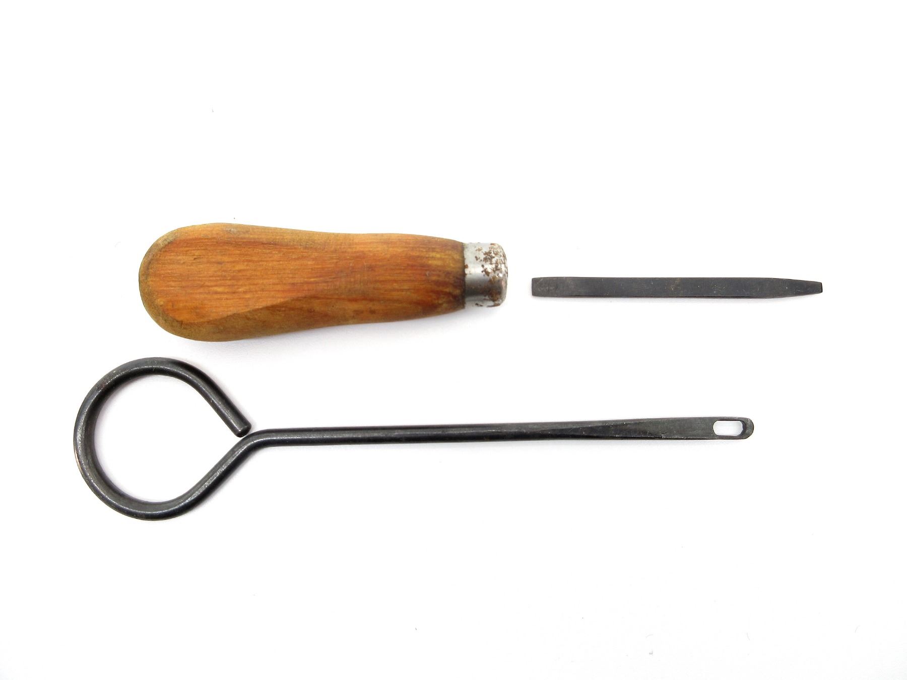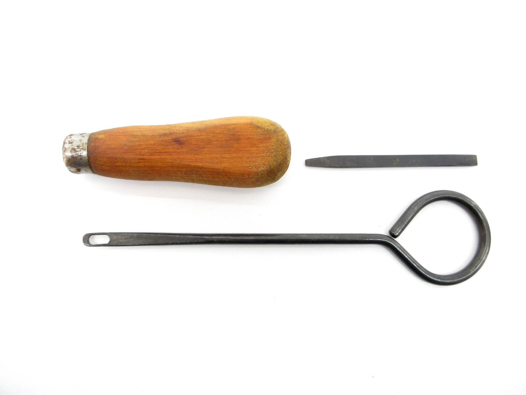LOT INCLUDES; (1) CLEANING ROD, BLUED STEEL CONSTRUCTION, OVERALL LENGTH APPROX. 7 1/8" & (1) WOOD HANDLED SCREW DRIVER. SEE PHOTOS.