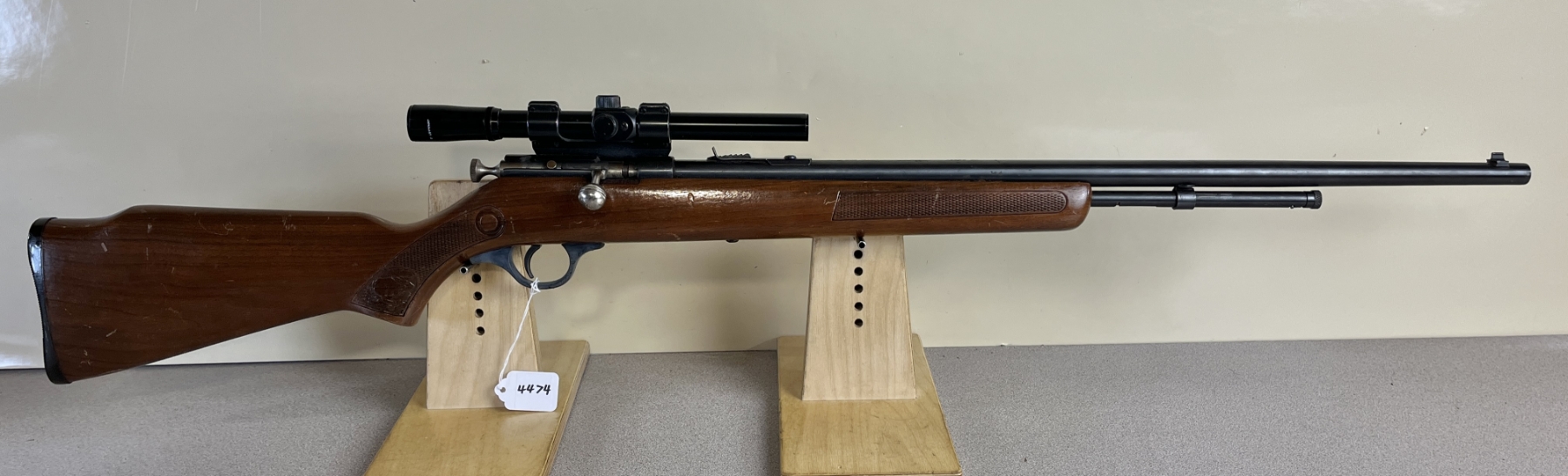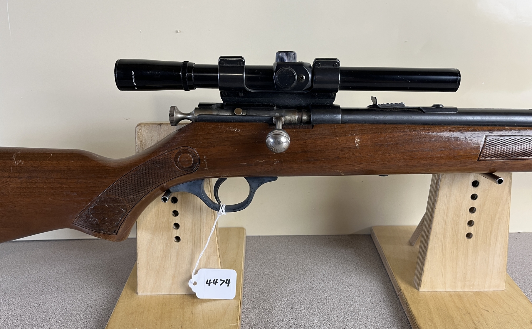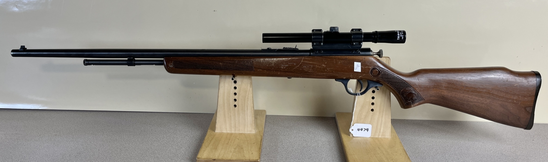 CONDITION: F-G OVERALL INCL BORE. SPECS: 24IN BBL WITH IRON SIGHTS. EXTRAS: TASCO 4X15 SCOPE CLEAR WITH CROSSHAIRS. S/N: NONE.