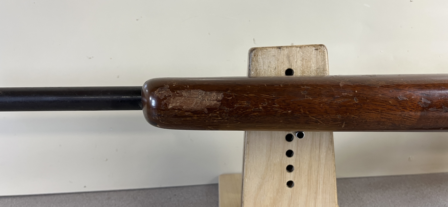 CONDITION: F-G OVERALL, BORE G. NOTE: STOCK SHOWS HANDLING MARKS INCL MODERATE SCRATCH ON UNDERSIDE OF FOREND, EXTERIOR OF BBL AND ACTION SHOW MILD RUST PITTING. SPECS: 20-1/4IN BBL WITH IRON SIGHTS. INCL 1X MAG. EXTRAS: NONE. S/N: NONE