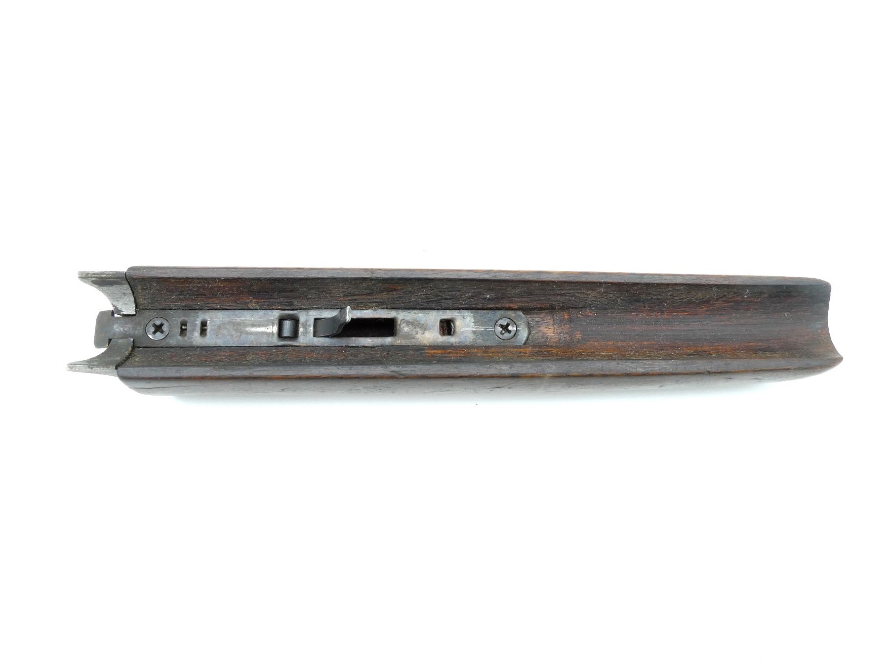 (1) WOODEN FOREND, SMOOTH, UNMARKED, MAY HAVE SMALL CRACKS & CHIPS, OVERALL LENGTH APPROX. 9.75". MAY REQUIRE FITTING. SEE PHOTOS.
