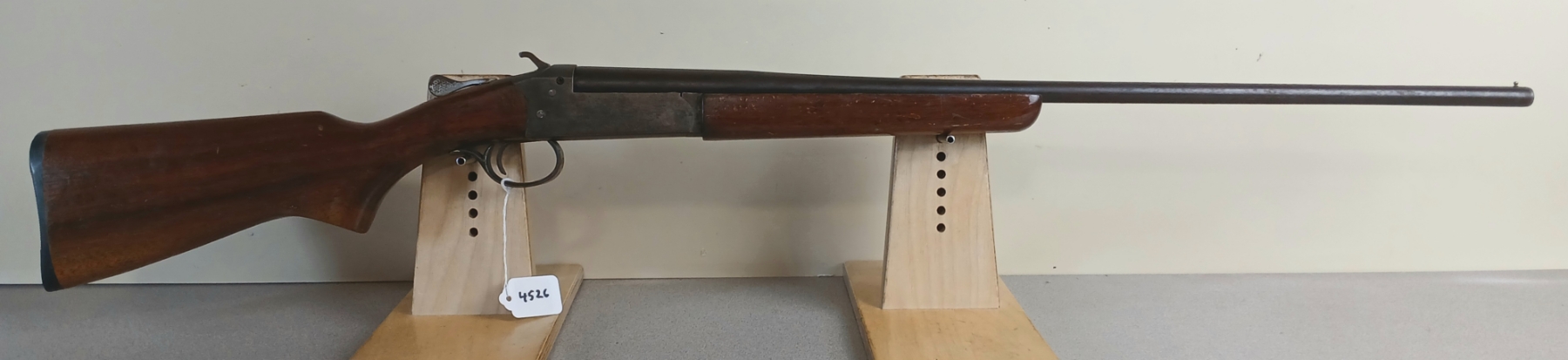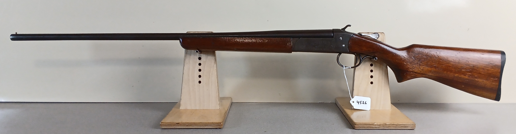 CONDITION: F-G OVERALL INCL BORE. NOTE: NAME ENGRAVED ON LEFT SIDE OF STOCK. SPECS: 26IN BBL FIXED FULL CHOKE. 2-1/2IN CHAMBER. BUTTSTOCK CUT DOWN TO LOP OF 11-3/4IN. EXTRAS: NONE. S/N: 18269